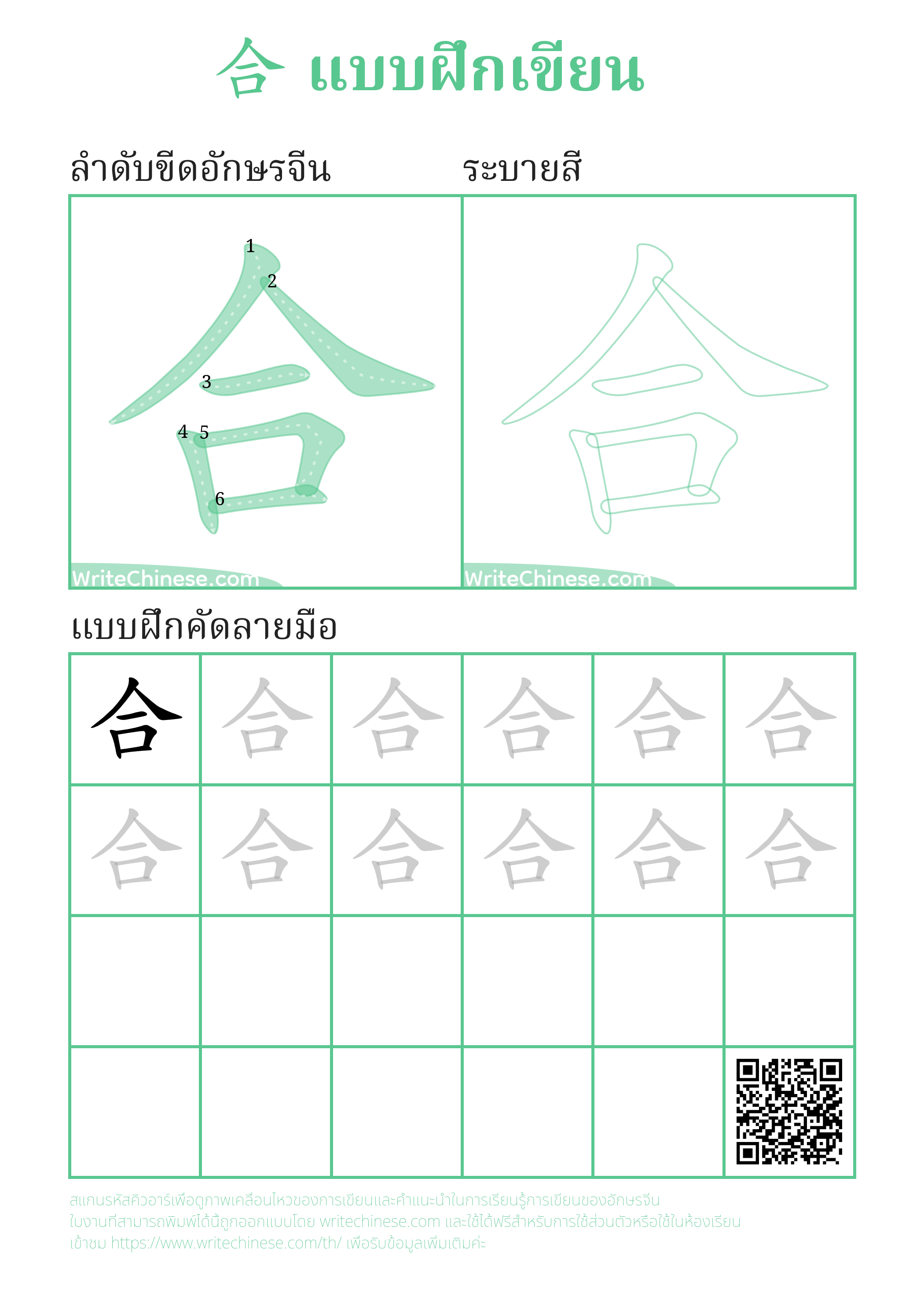 รูปภาพลำดับการเขียนตัวอักษรจีนทั้งหมด ภาพเคลื่อนไหว วิดีโอ และแผ่นงานพิมพ์ที่สามารถพิมพ์ได้ในเว็บไซต์นี้ เป็นฟรีสำหรับการใช้ส่วนบุคคลหรือใช้ในห้องเรียน กรุณาระบุแหล่งที่มาและ URL ของเว็บไซต์เมื่อนำมาใช้