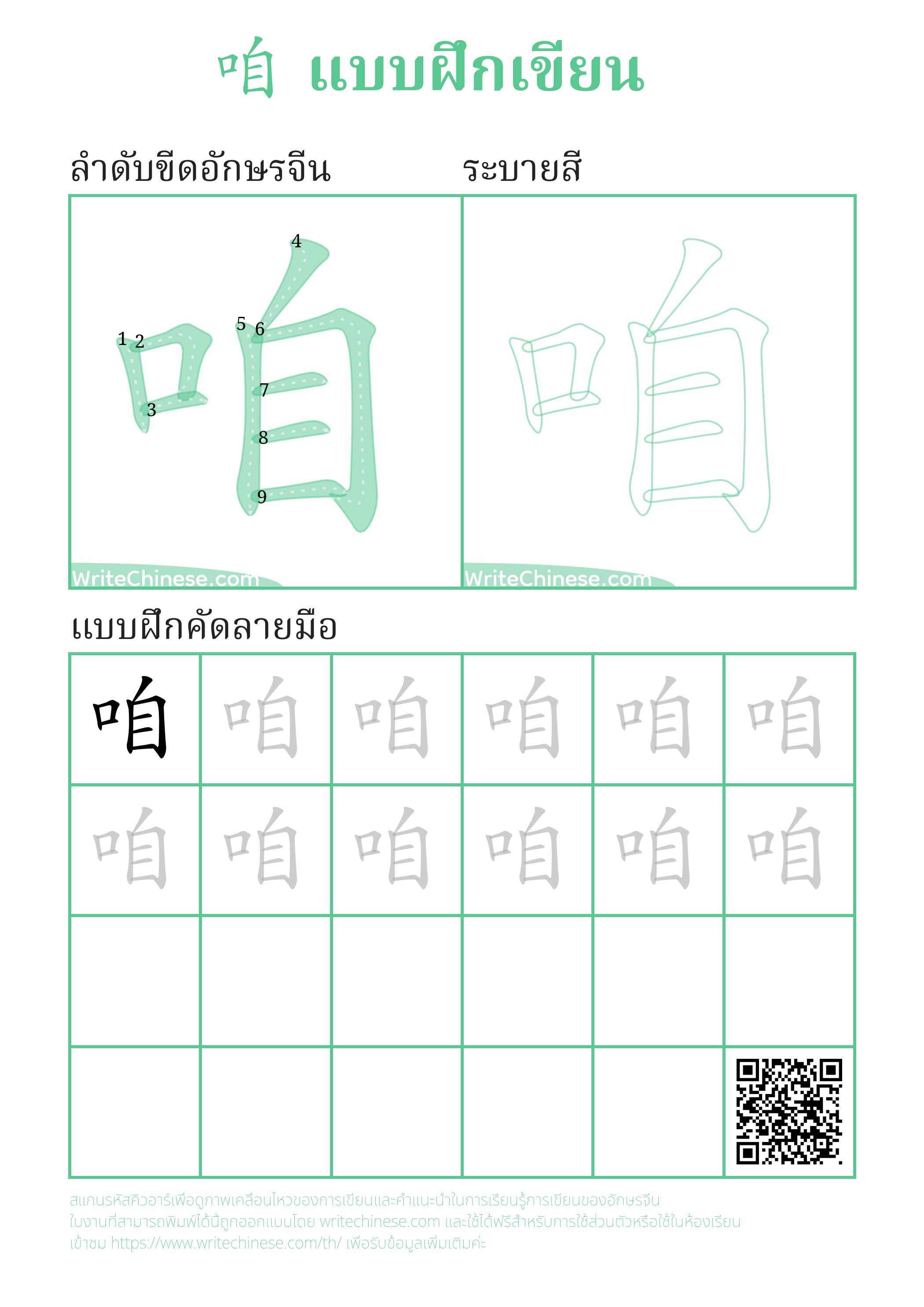 เรียนรู้การเขียนอักษรจีน "咱" ขีดละขีดด้วยคำแนะนำขั้นตอนที่ชัดเจน