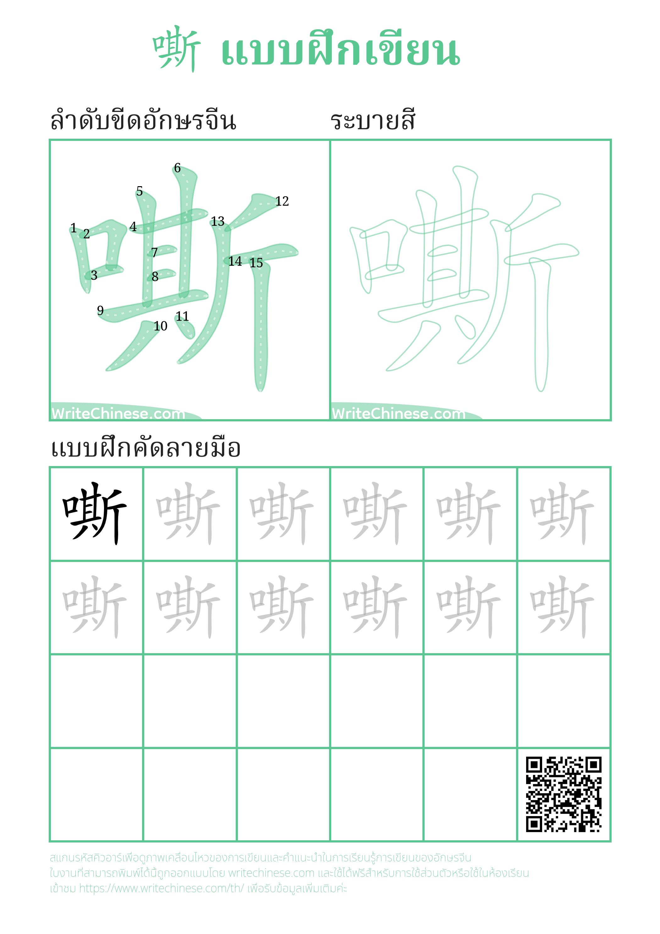 รูปภาพลำดับการเขียนตัวอักษรจีนทั้งหมด ภาพเคลื่อนไหว วิดีโอ และแผ่นงานพิมพ์ที่สามารถพิมพ์ได้ในเว็บไซต์นี้ เป็นฟรีสำหรับการใช้ส่วนบุคคลหรือใช้ในห้องเรียน กรุณาระบุแหล่งที่มาและ URL ของเว็บไซต์เมื่อนำมาใช้