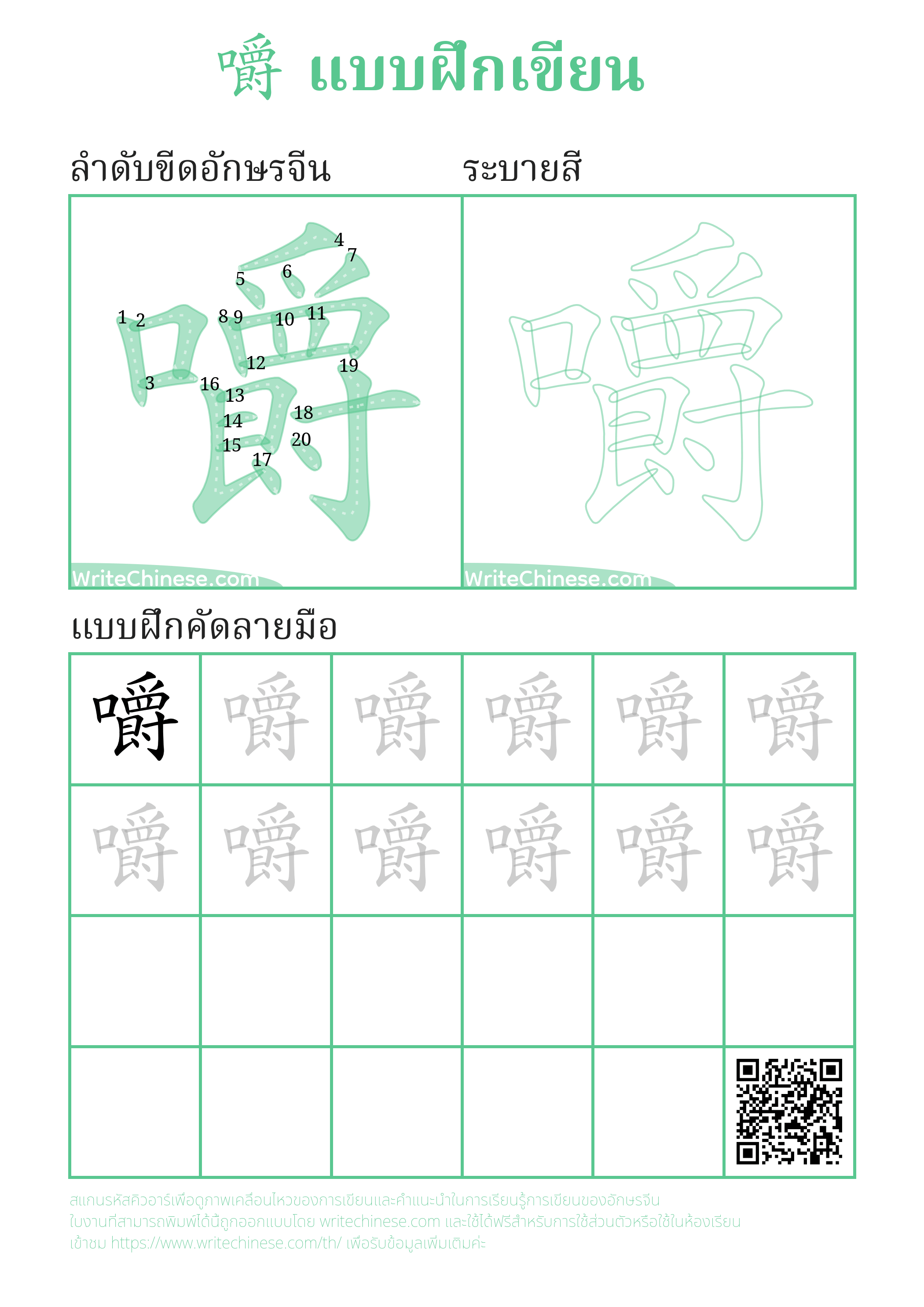 เรียนรู้การเขียนอักษรจีน "嚼" โดยการดูภาพเคลื่อนไหวของลำดับการเสียบเส้นของ "嚼"