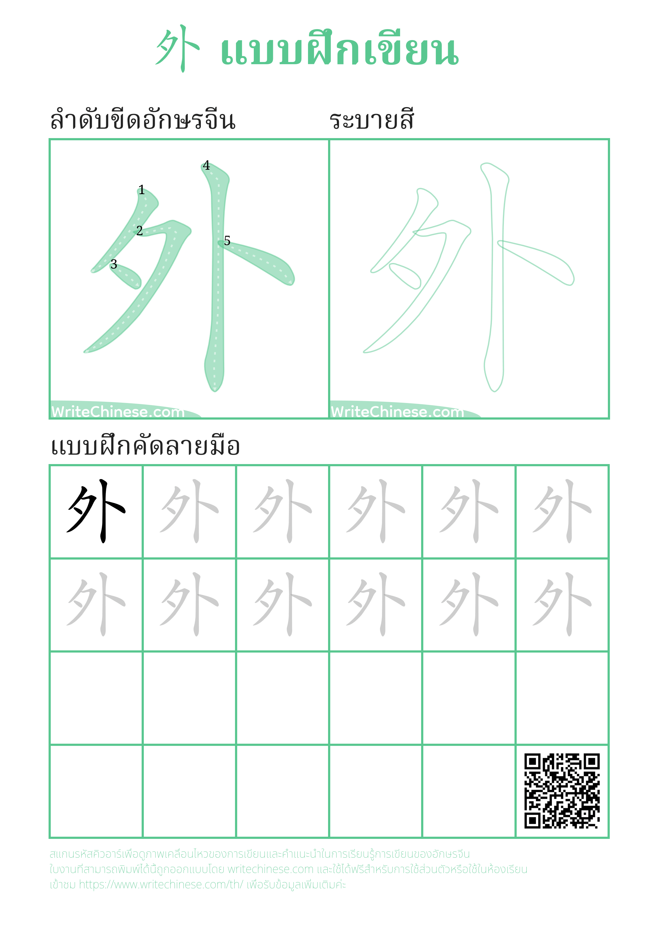 เรียนรู้การเขียนอักษรจีน "外" ขีดละขีดด้วยคำแนะนำขั้นตอนที่ชัดเจน