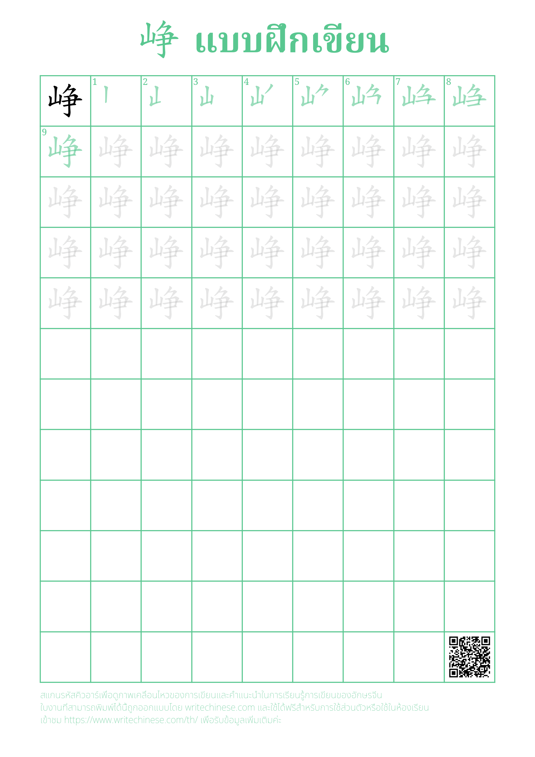 เรียนรู้การเขียนอักษรจีน "峥" ขีดละขีดด้วยคำแนะนำขั้นตอนที่ชัดเจน