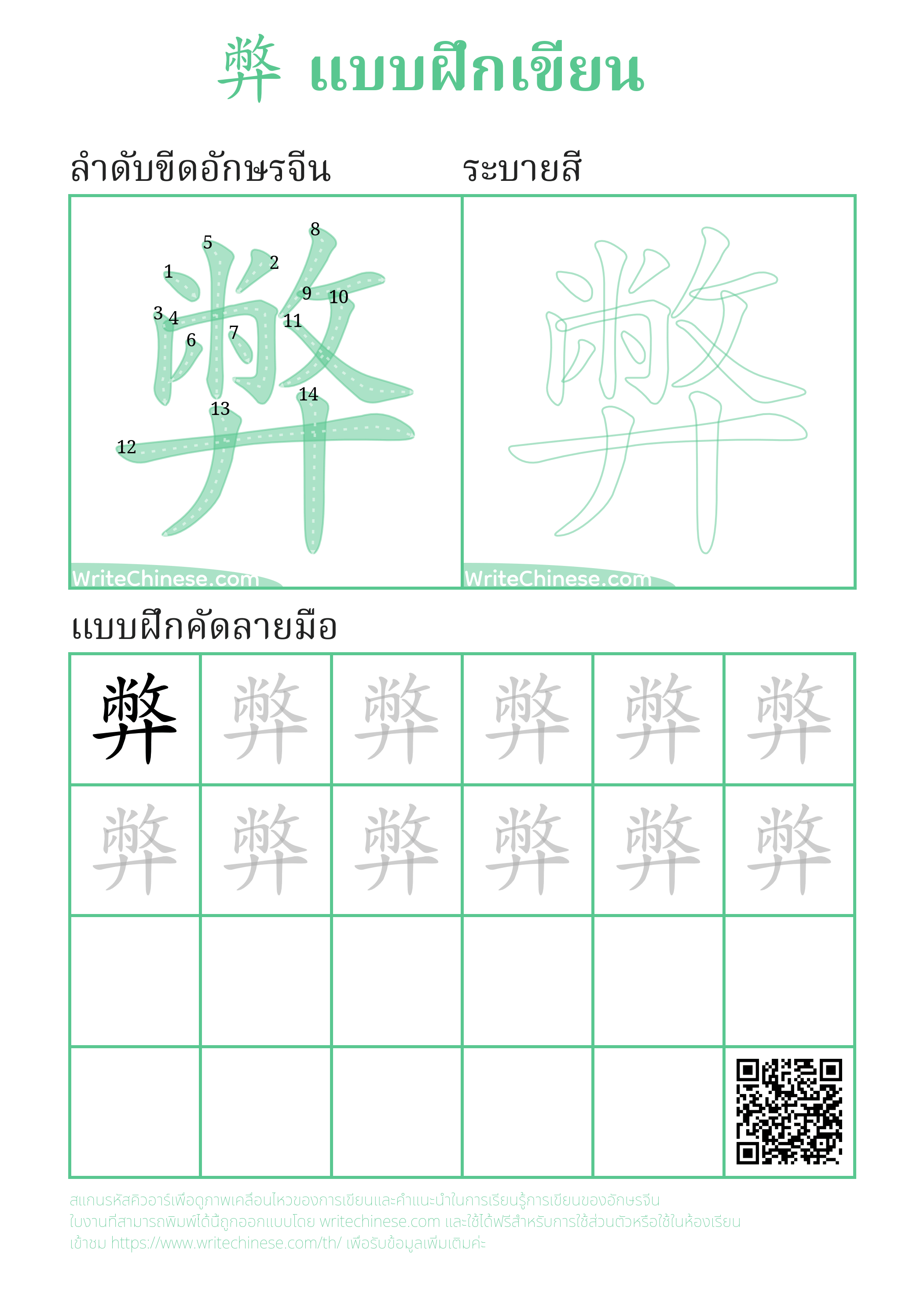 เรียนรู้การเขียนอักษรจีน "弊" ขีดละขีดด้วยคำแนะนำขั้นตอนที่ชัดเจน