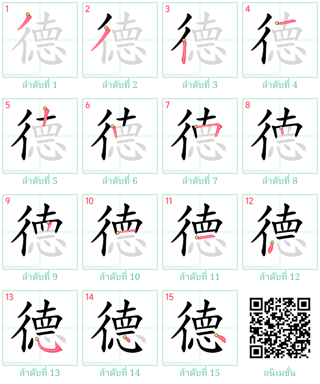 เรียนรู้การเขียนอักษรจีน "德" ขีดละขีดด้วยคำแนะนำขั้นตอนที่ชัดเจน