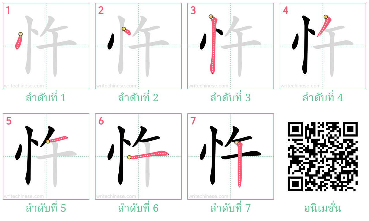 เรียนรู้การเขียนอักษรจีน "忤" ขีดละขีดด้วยคำแนะนำขั้นตอนที่ชัดเจน