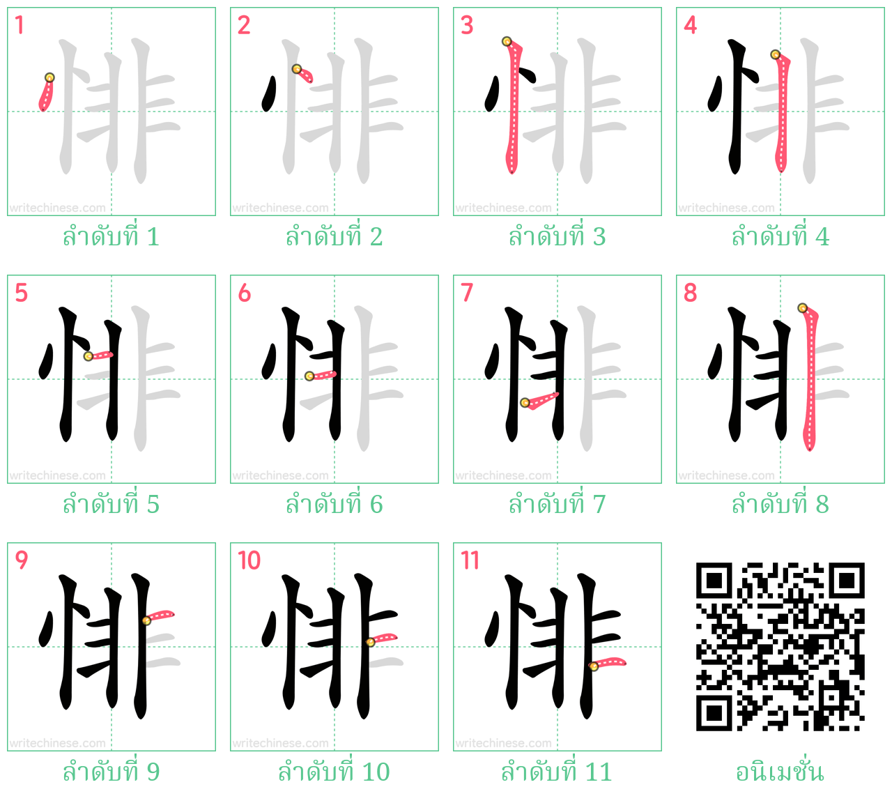 เรียนรู้การเขียนอักษรจีน "悱" ขีดละขีดด้วยคำแนะนำขั้นตอนที่ชัดเจน