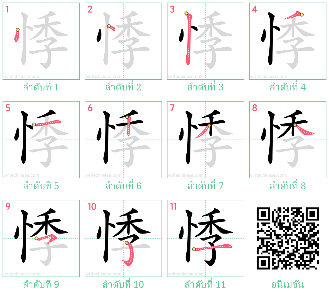 เรียนรู้การเขียนอักษรจีน "悸" โดยการดูภาพเคลื่อนไหวของลำดับการเสียบเส้นของ "悸"