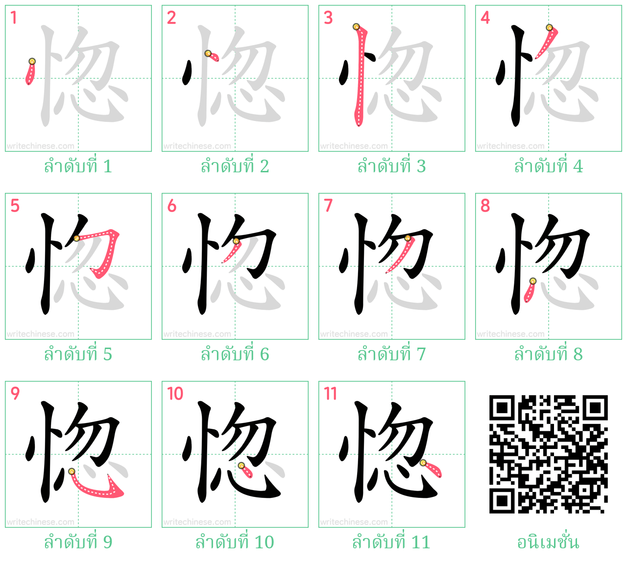 รูปภาพลำดับการเขียนตัวอักษรจีนทั้งหมด ภาพเคลื่อนไหว วิดีโอ และแผ่นงานพิมพ์ที่สามารถพิมพ์ได้ในเว็บไซต์นี้ เป็นฟรีสำหรับการใช้ส่วนบุคคลหรือใช้ในห้องเรียน กรุณาระบุแหล่งที่มาและ URL ของเว็บไซต์เมื่อนำมาใช้