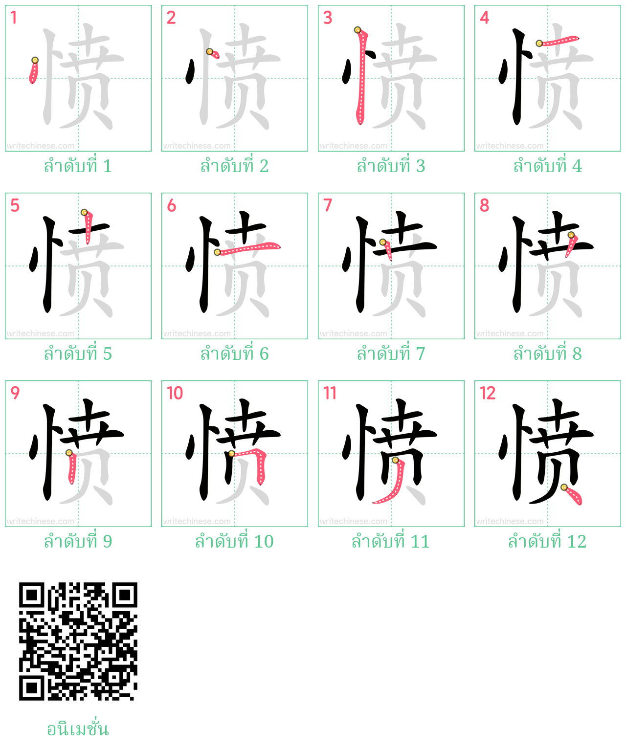 愤 ลำดับขีดอักษรจีน