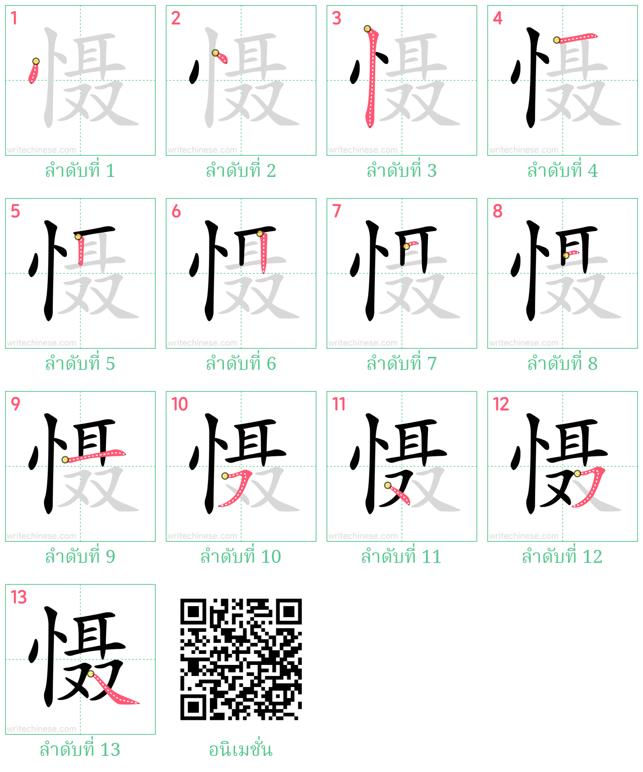 เรียนรู้การเขียนอักษรจีน "慑" ขีดละขีดด้วยคำแนะนำขั้นตอนที่ชัดเจน