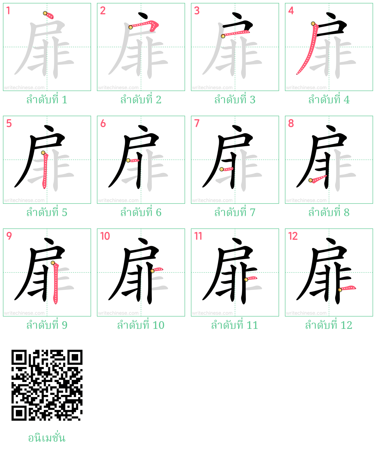 เรียนรู้การเขียนอักษรจีน "扉" ขีดละขีดด้วยคำแนะนำขั้นตอนที่ชัดเจน