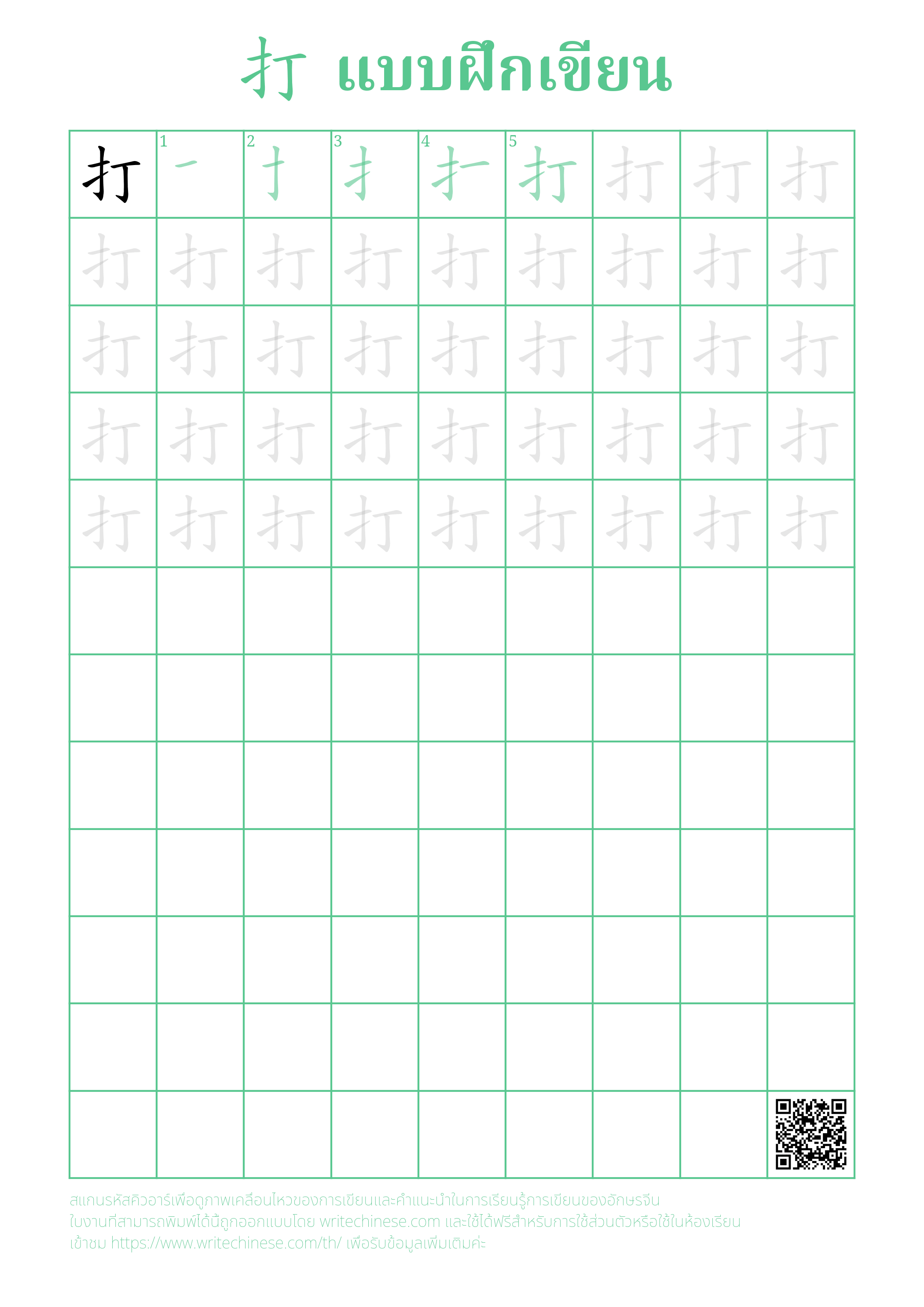 เรียนรู้การเขียนอักษรจีน "打" ขีดละขีดด้วยคำแนะนำขั้นตอนที่ชัดเจน