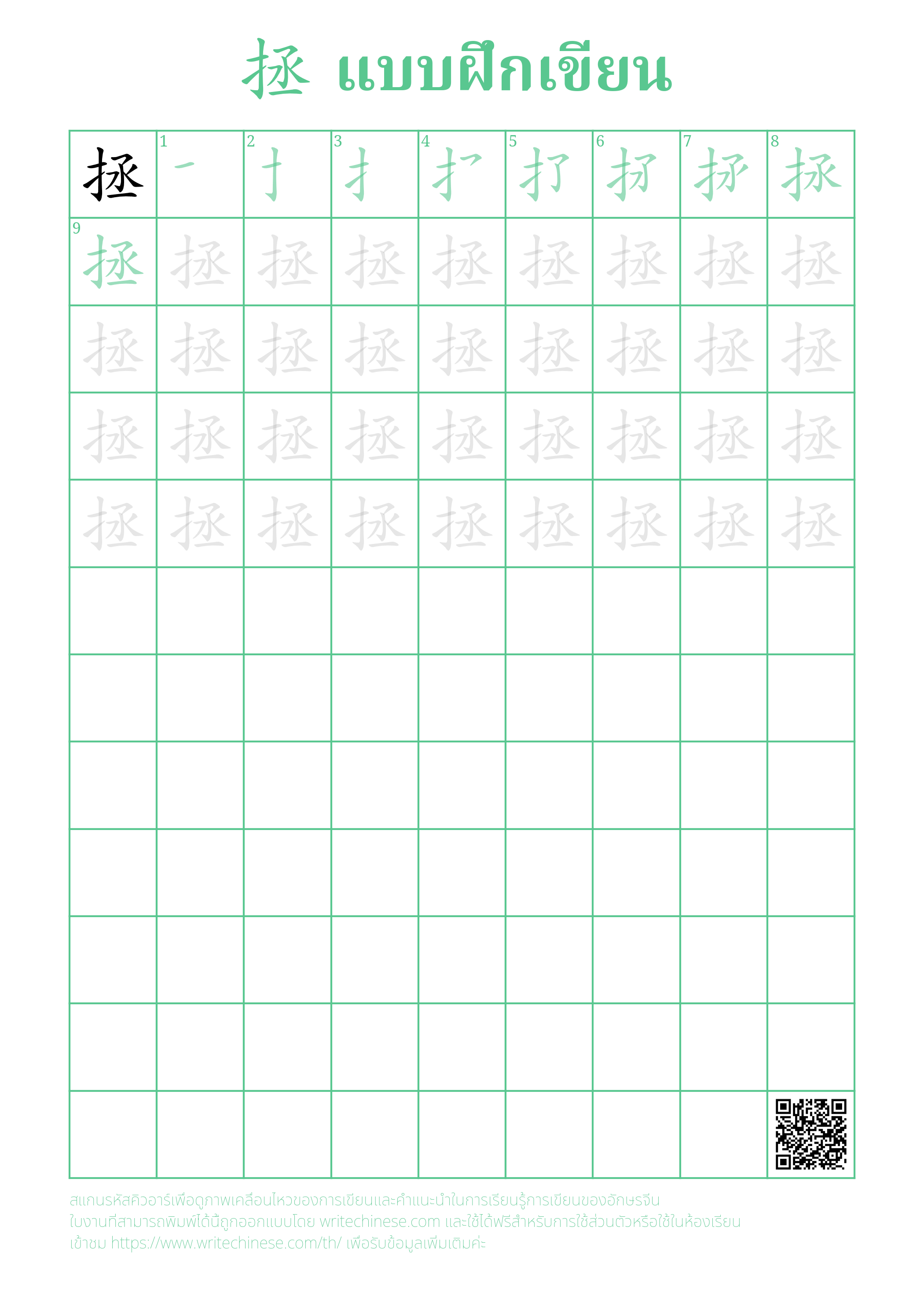 เรียนรู้การเขียนอักษรจีน "拯" ขีดละขีดด้วยคำแนะนำขั้นตอนที่ชัดเจน