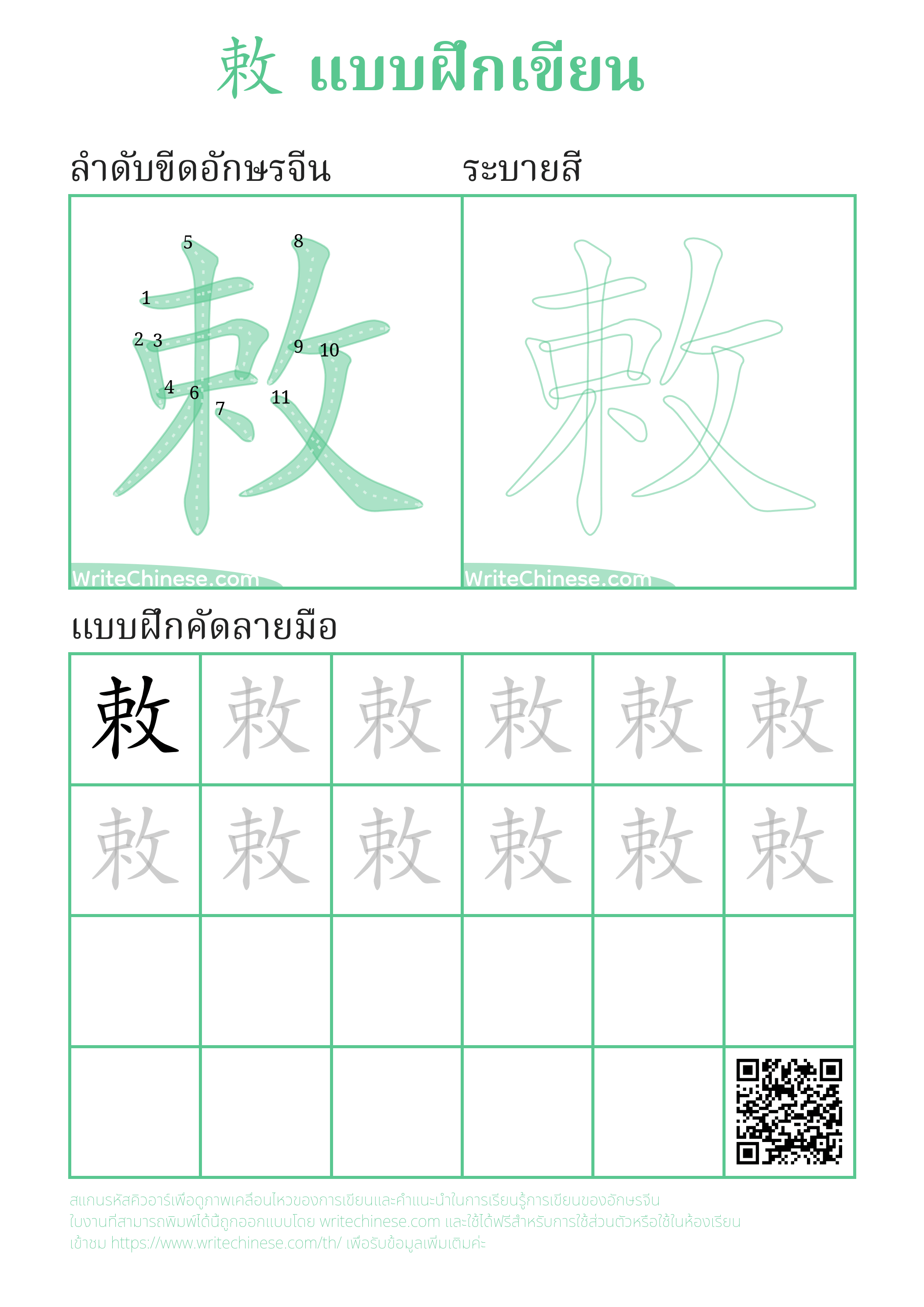 เรียนรู้การเขียนอักษรจีน "敕" ขีดละขีดด้วยคำแนะนำขั้นตอนที่ชัดเจน