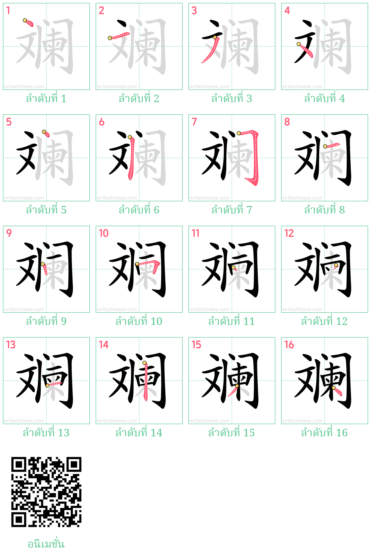 แผ่นงานฝึกฝนลำดับการเขียนตัวอักษรจีน 斓 ที่สามารถพิมพ์ได้