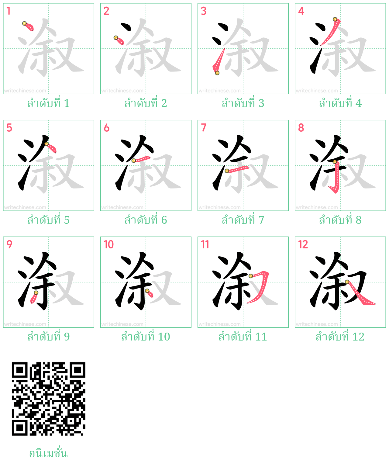 เรียนรู้การเขียนอักษรจีน "溆" โดยการดูภาพเคลื่อนไหวของลำดับการเสียบเส้นของ "溆"