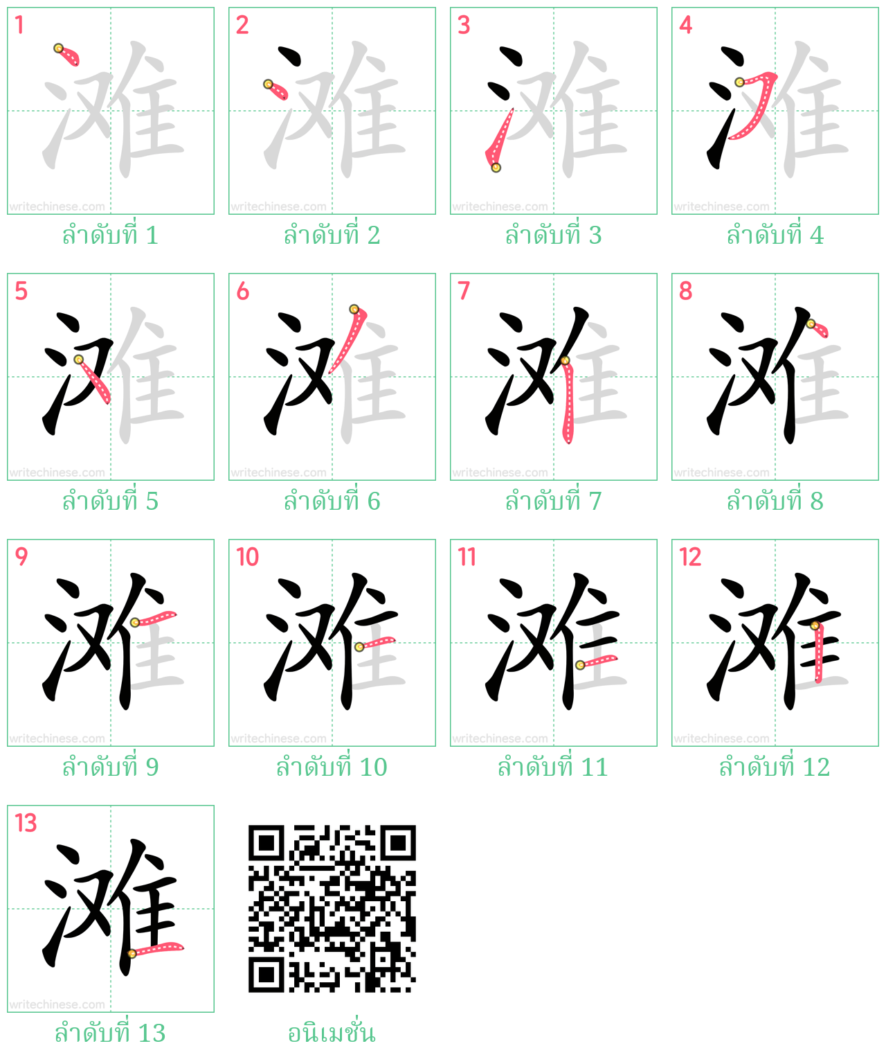 เรียนรู้การเขียนอักษรจีน "滩" ขีดละขีดด้วยคำแนะนำขั้นตอนที่ชัดเจน