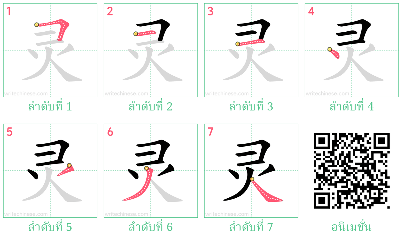 เรียนรู้การเขียนอักษรจีน "灵" ขีดละขีดด้วยคำแนะนำขั้นตอนที่ชัดเจน