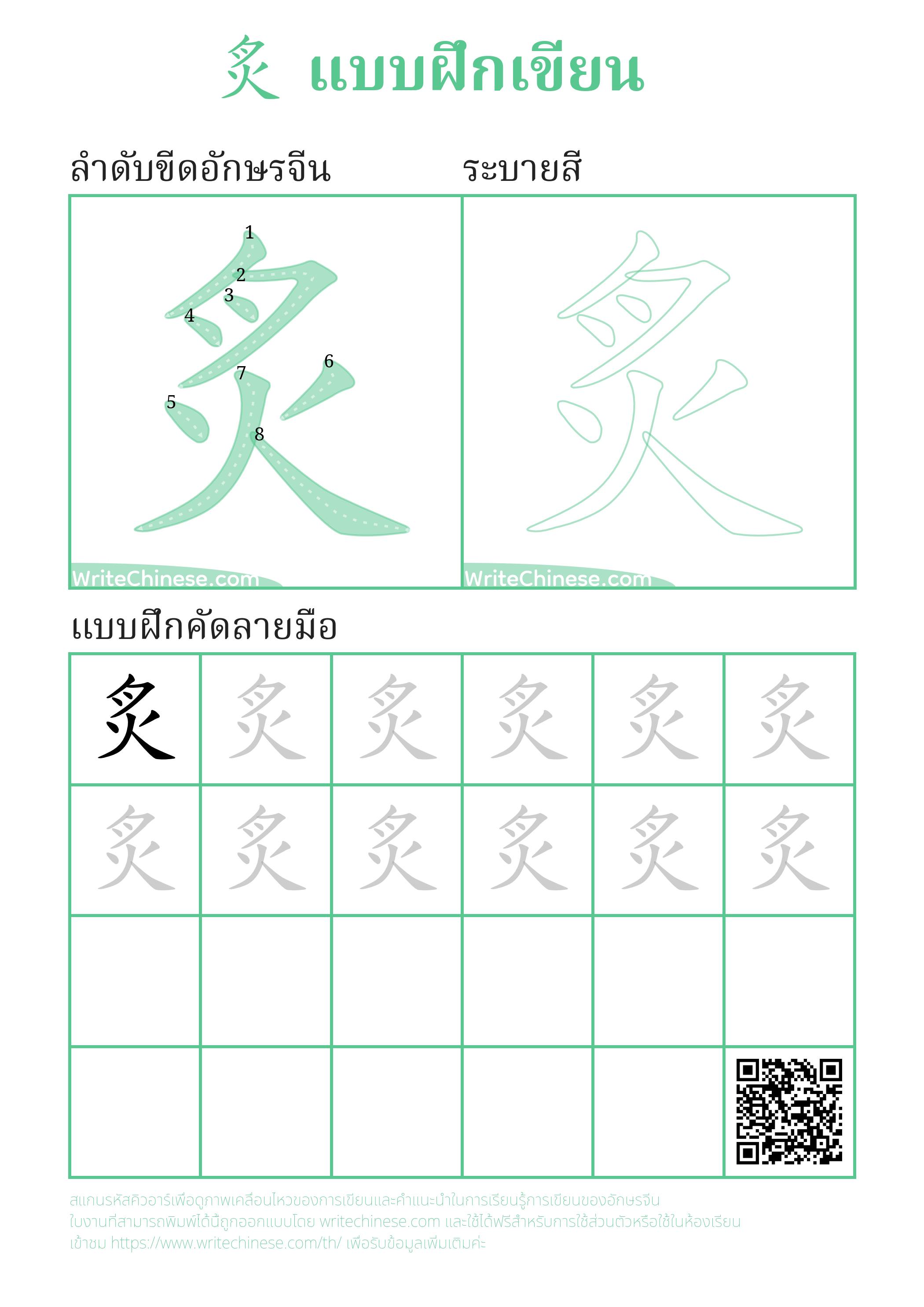 เรียนรู้การเขียนอักษรจีน "炙" ขีดละขีดด้วยคำแนะนำขั้นตอนที่ชัดเจน