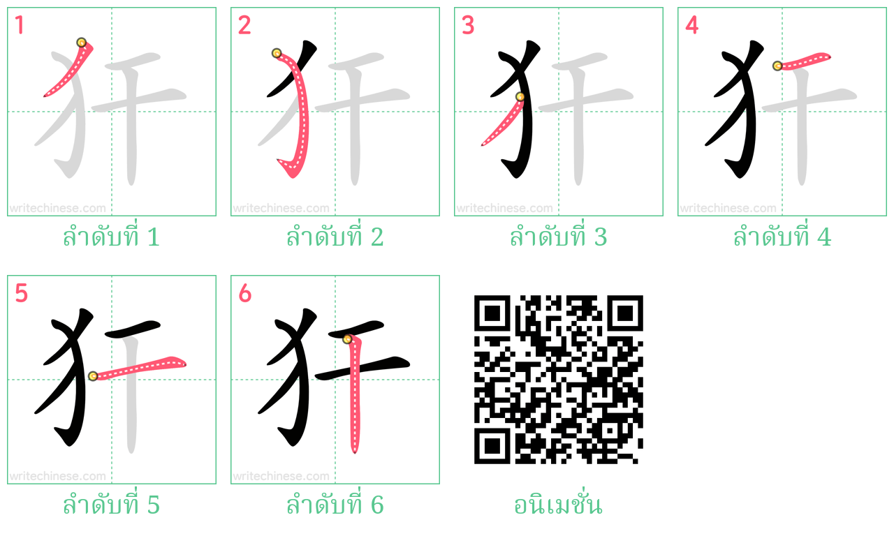 เรียนรู้การเขียนอักษรจีน "犴" โดยการดูภาพเคลื่อนไหวของลำดับการเสียบเส้นของ "犴"