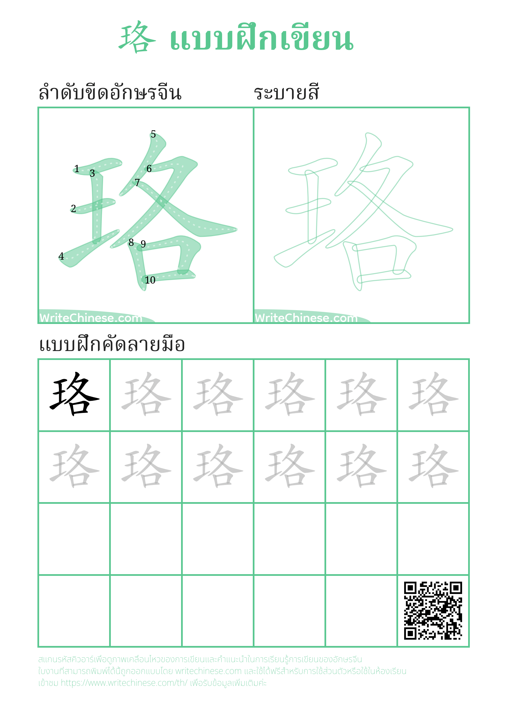 เรียนรู้การเขียนอักษรจีน "珞" ขีดละขีดด้วยคำแนะนำขั้นตอนที่ชัดเจน