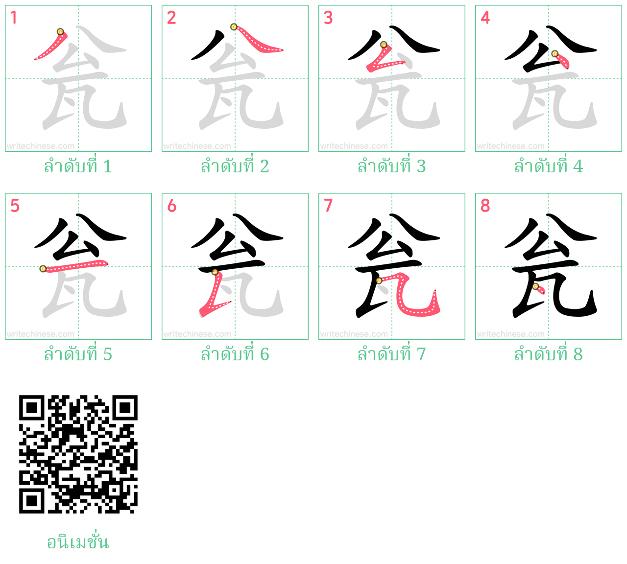 瓮 ลำดับขีดอักษรจีน