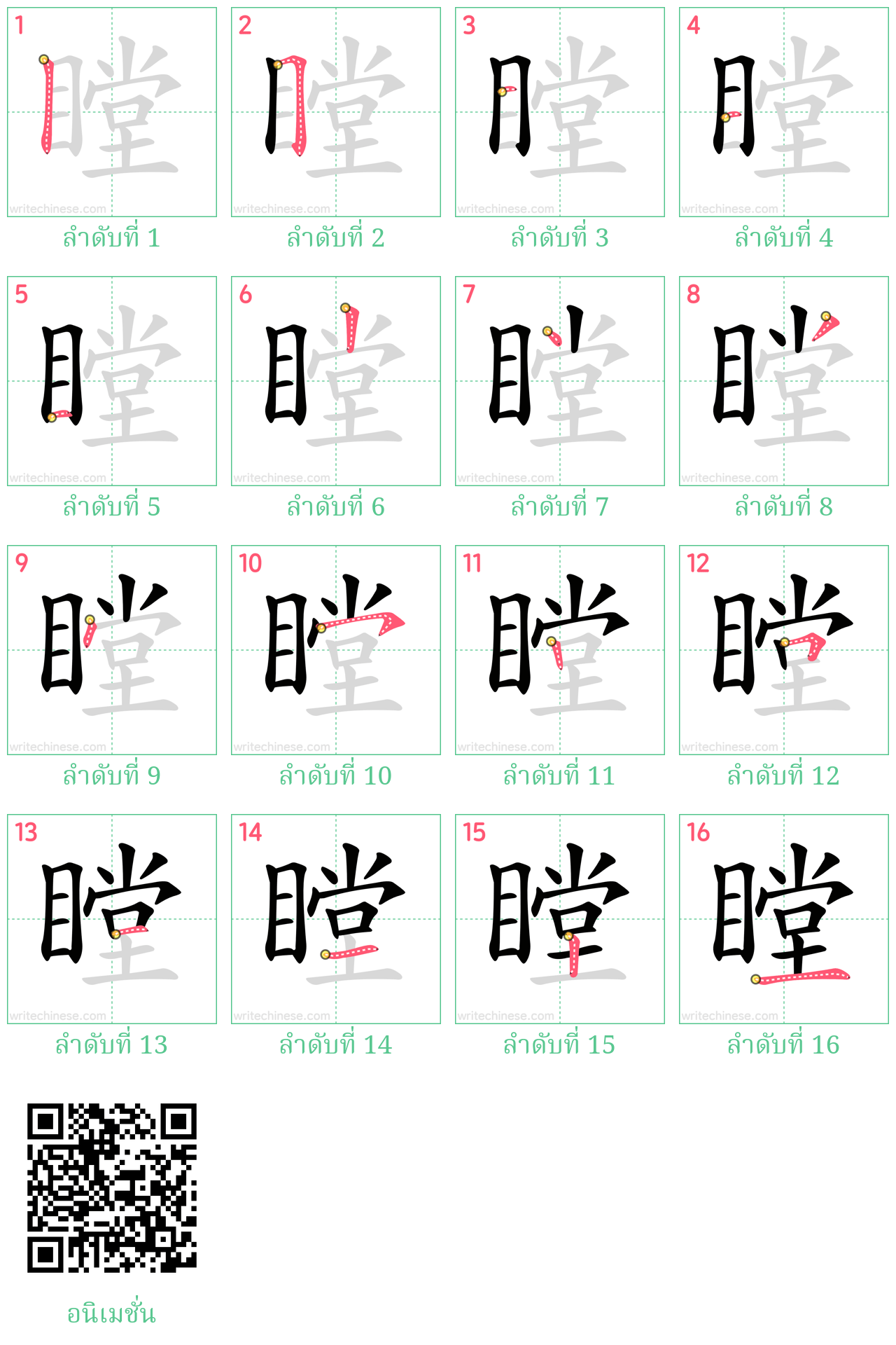 เรียนรู้การเขียนอักษรจีน "瞠" ขีดละขีดด้วยคำแนะนำขั้นตอนที่ชัดเจน