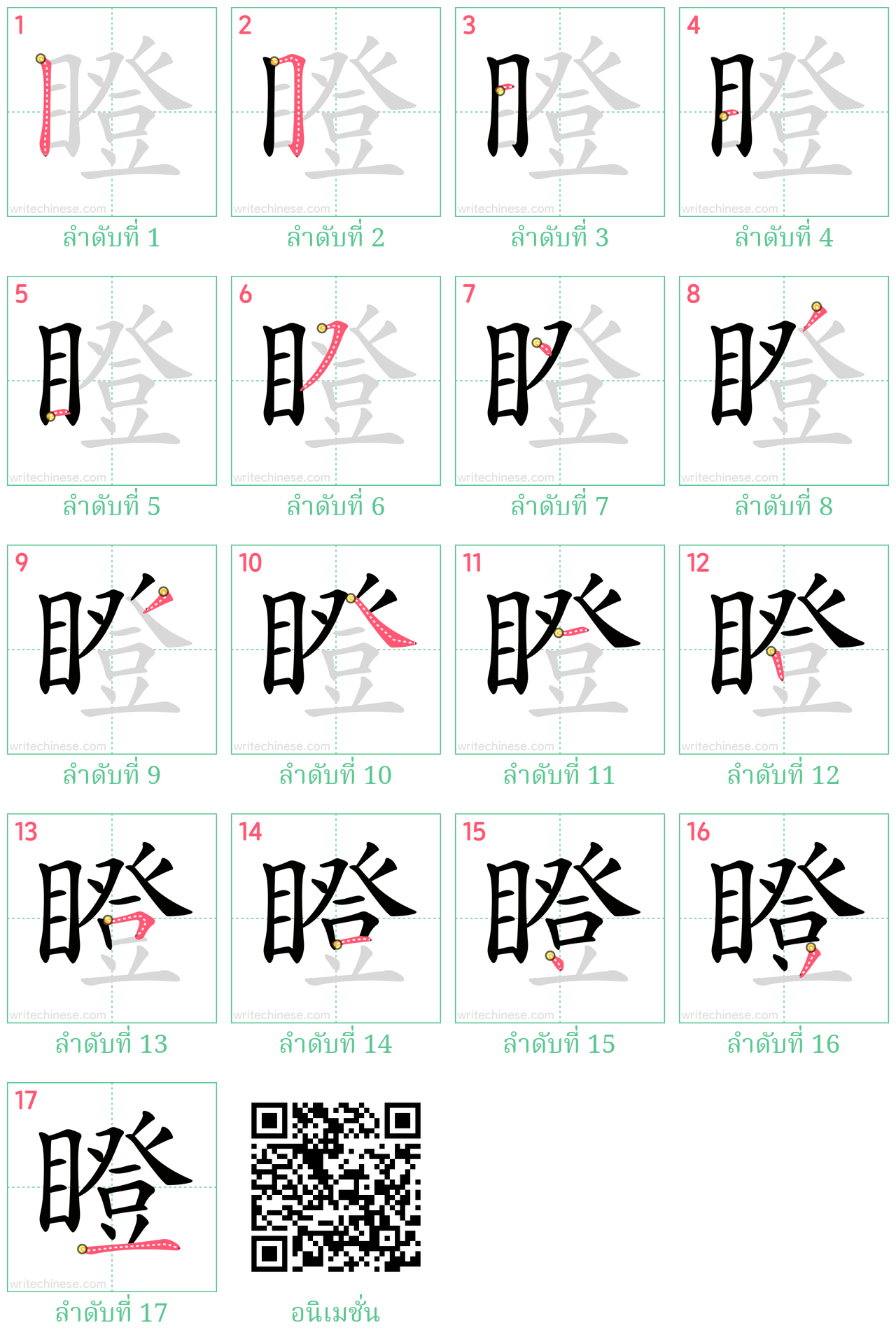 เรียนรู้การเขียนอักษรจีน "瞪" ขีดละขีดด้วยคำแนะนำขั้นตอนที่ชัดเจน