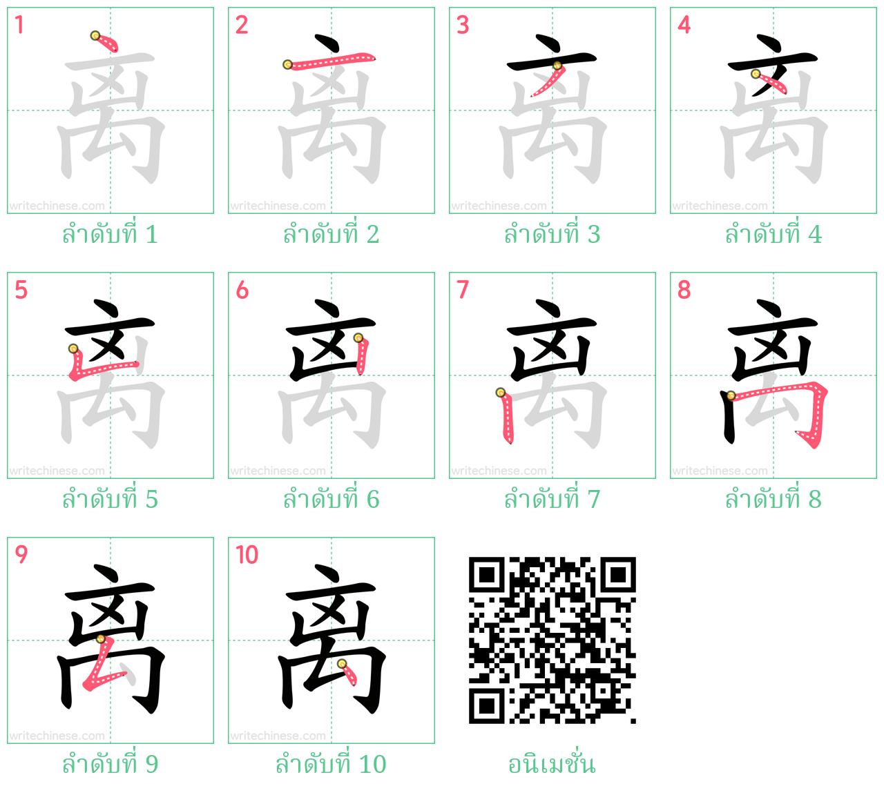 离 ลำดับขีดอักษรจีน