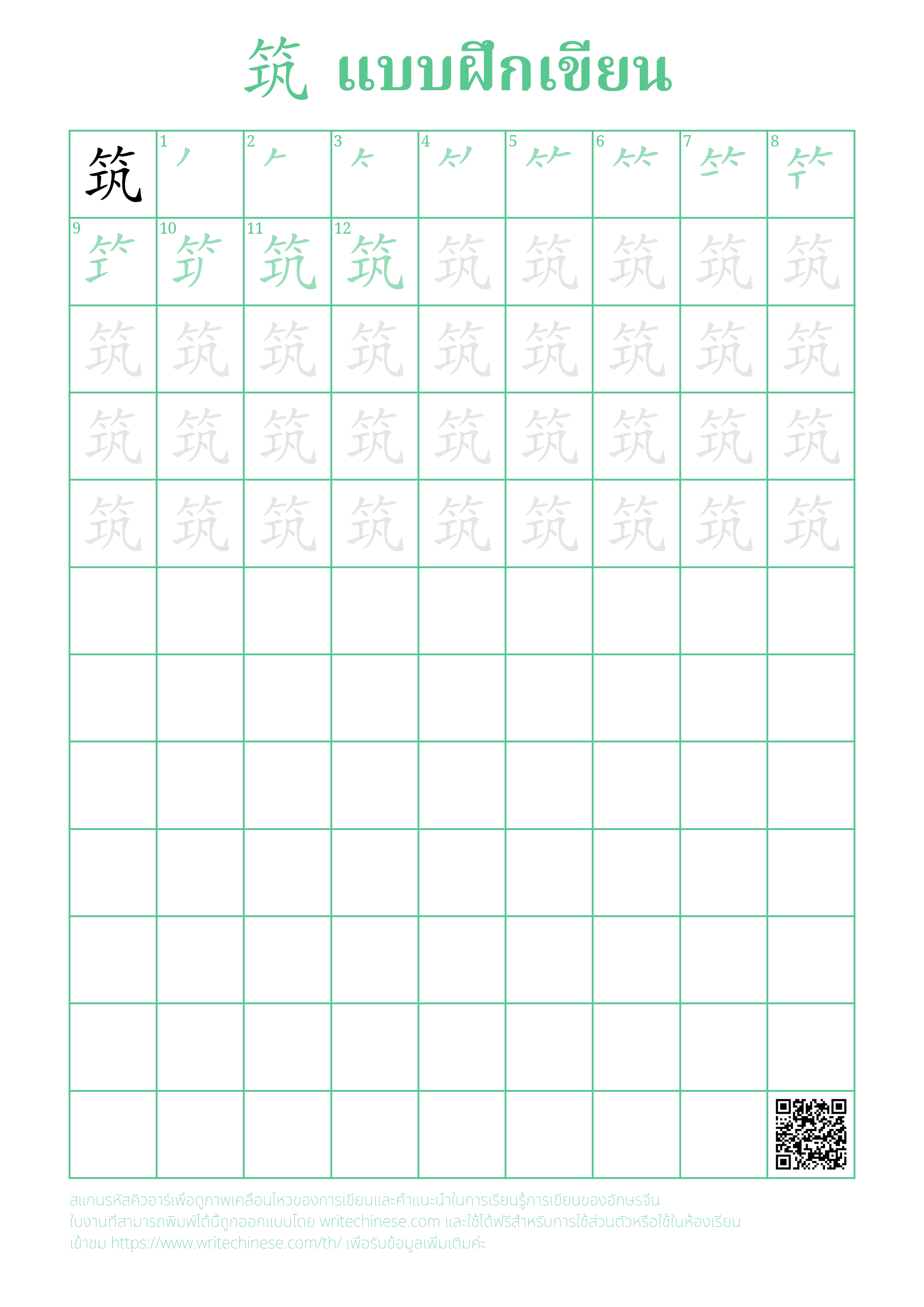 เรียนรู้การเขียนอักษรจีน "筑" ขีดละขีดด้วยคำแนะนำขั้นตอนที่ชัดเจน