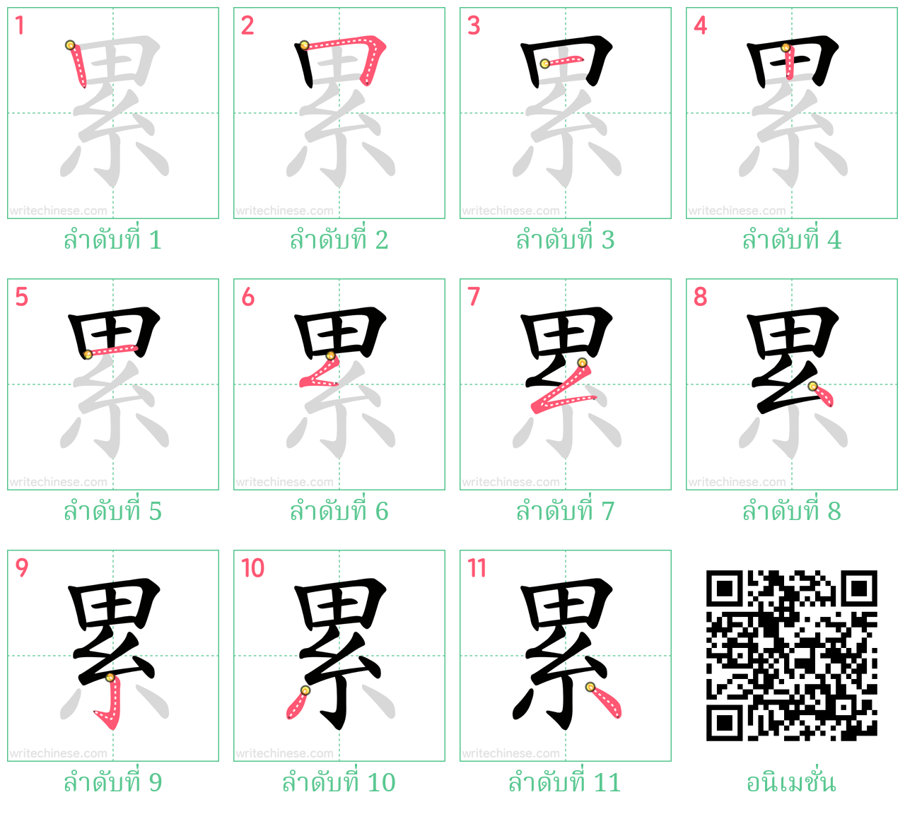 累 ลำดับขีดอักษรจีน