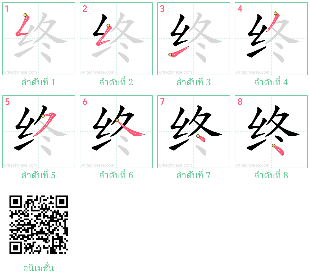 เรียนรู้การเขียนอักษรจีน "终" ขีดละขีดด้วยคำแนะนำขั้นตอนที่ชัดเจน