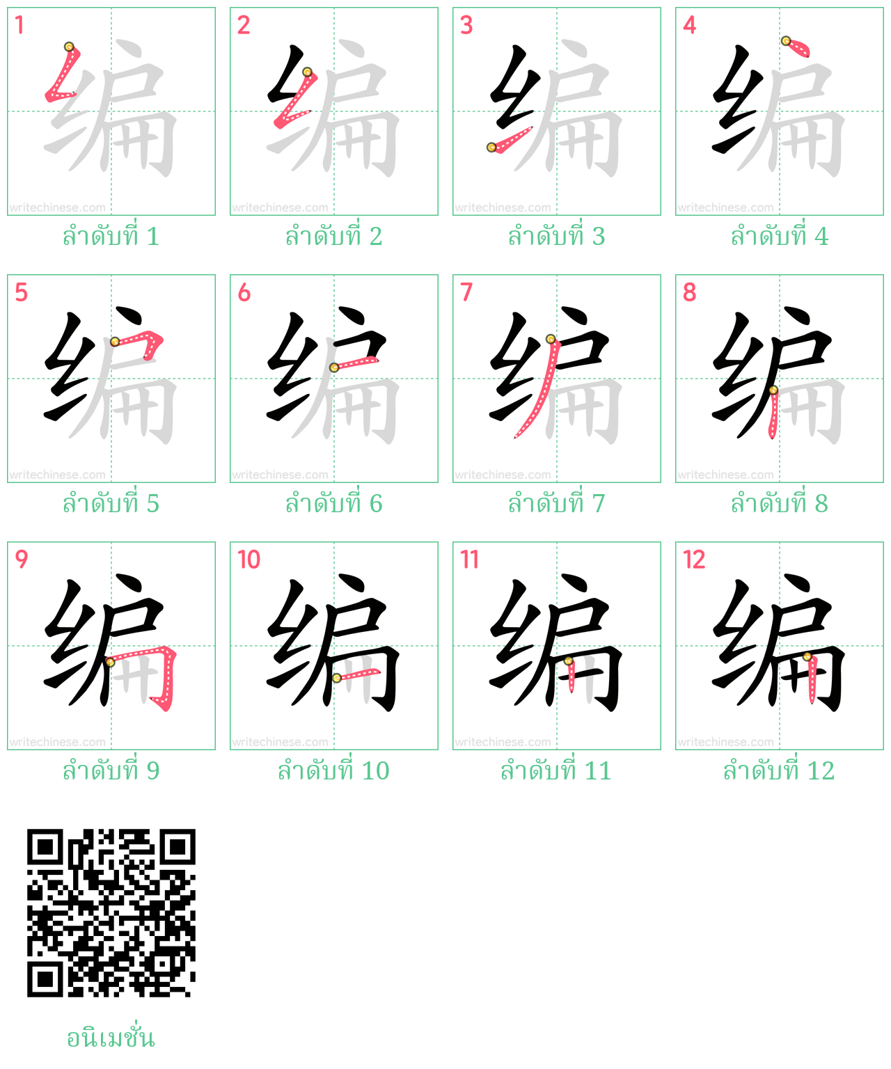 เรียนรู้การเขียนอักษรจีน "编" ขีดละขีดด้วยคำแนะนำขั้นตอนที่ชัดเจน