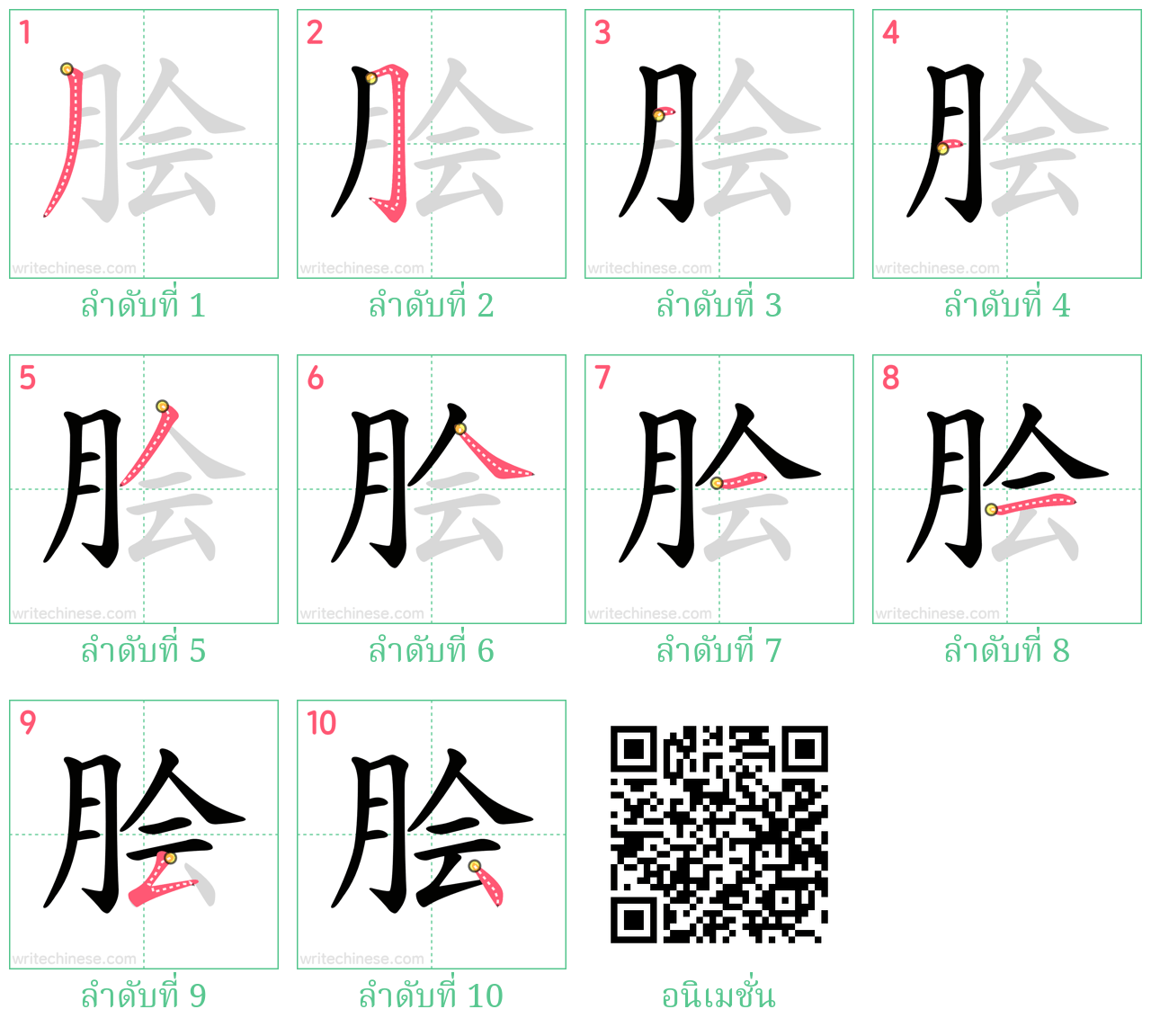 เรียนรู้การเขียนอักษรจีน "脍" โดยการดูภาพเคลื่อนไหวของลำดับการเสียบเส้นของ "脍"