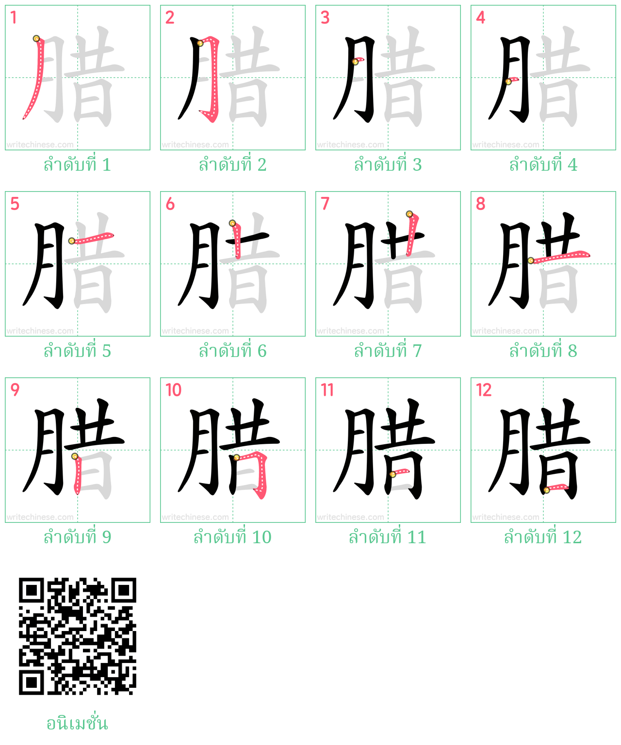 เรียนรู้การเขียนอักษรจีน "腊" ขีดละขีดด้วยคำแนะนำขั้นตอนที่ชัดเจน
