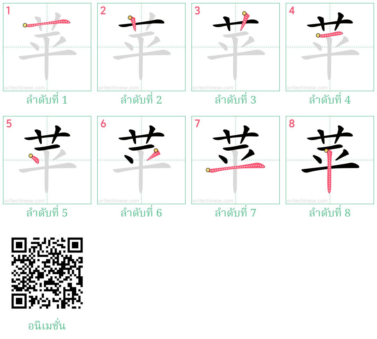 เรียนรู้การเขียนอักษรจีน "苹" โดยการดูภาพเคลื่อนไหวของลำดับการเสียบเส้นของ "苹"