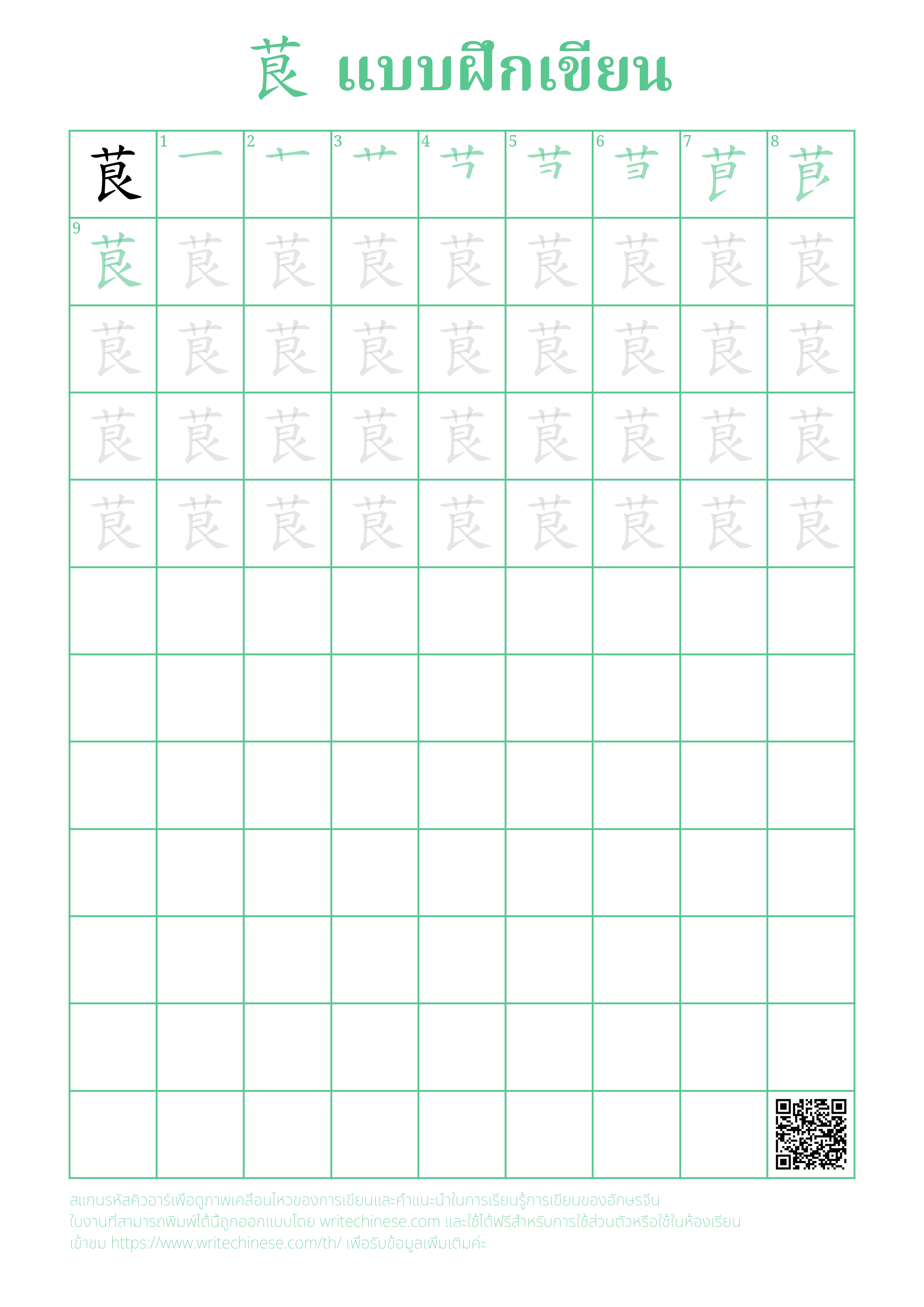 เรียนรู้การเขียนอักษรจีน "茛" ขีดละขีดด้วยคำแนะนำขั้นตอนที่ชัดเจน