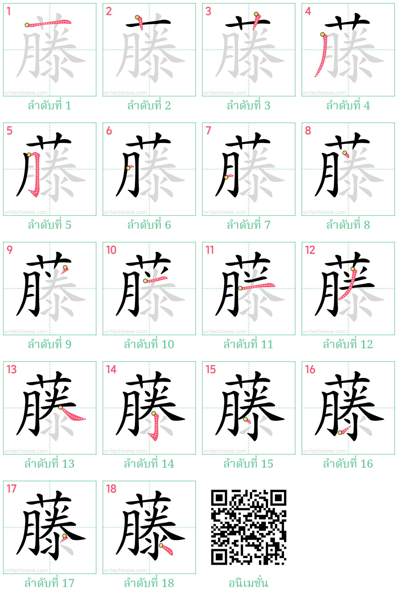 เรียนรู้การเขียนอักษรจีน "藤" ขีดละขีดด้วยคำแนะนำขั้นตอนที่ชัดเจน