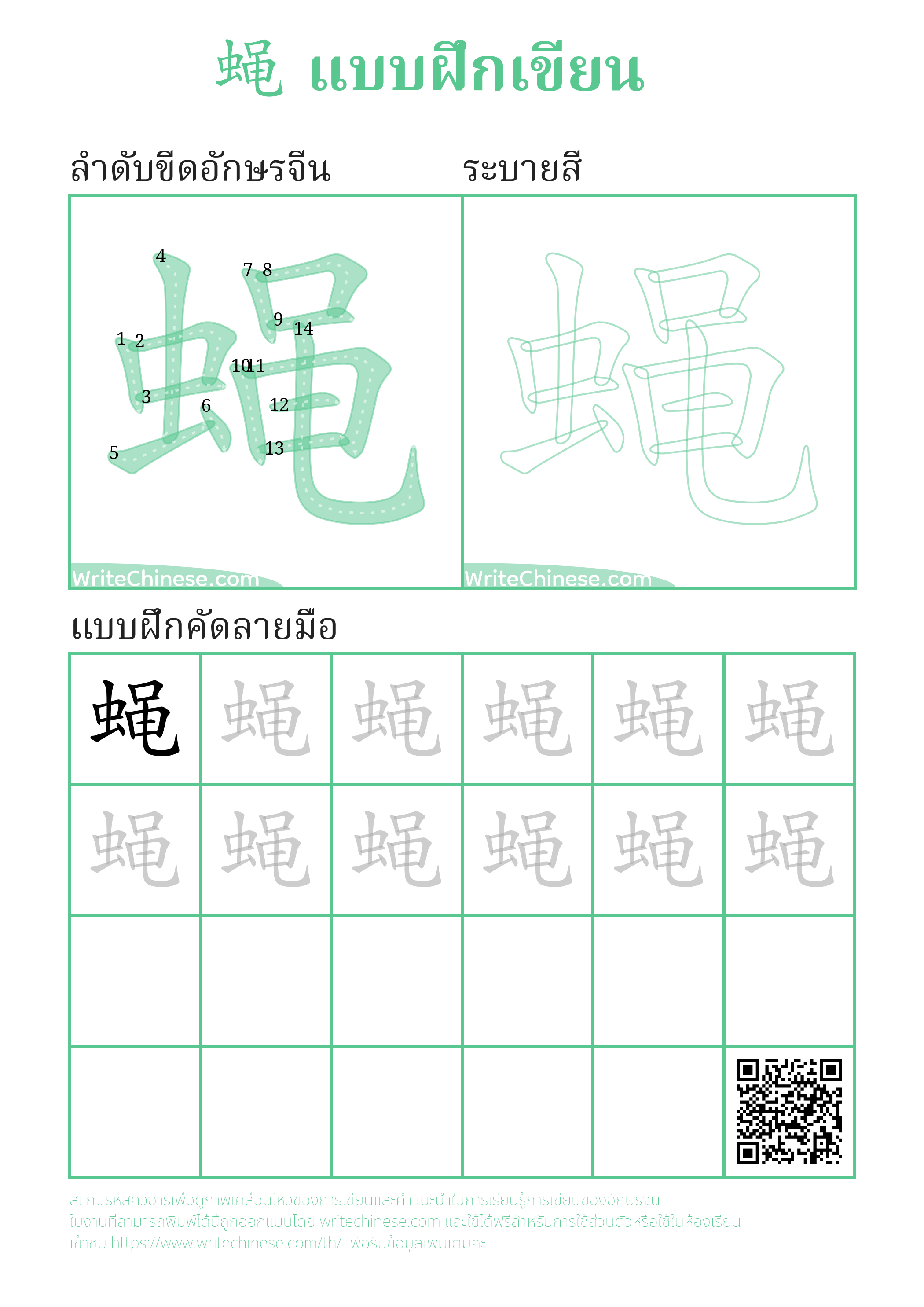 เรียนรู้การเขียนอักษรจีน "蝇" ขีดละขีดด้วยคำแนะนำขั้นตอนที่ชัดเจน