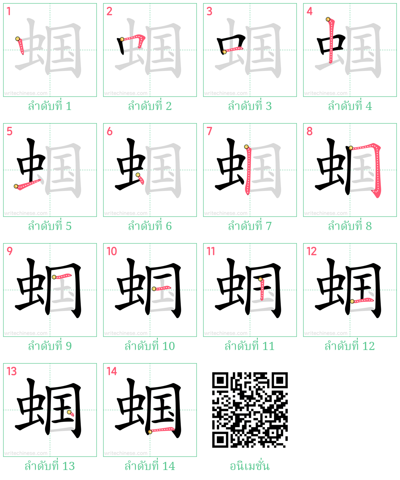 เรียนรู้การเขียนอักษรจีน "蝈" ขีดละขีดด้วยคำแนะนำขั้นตอนที่ชัดเจน
