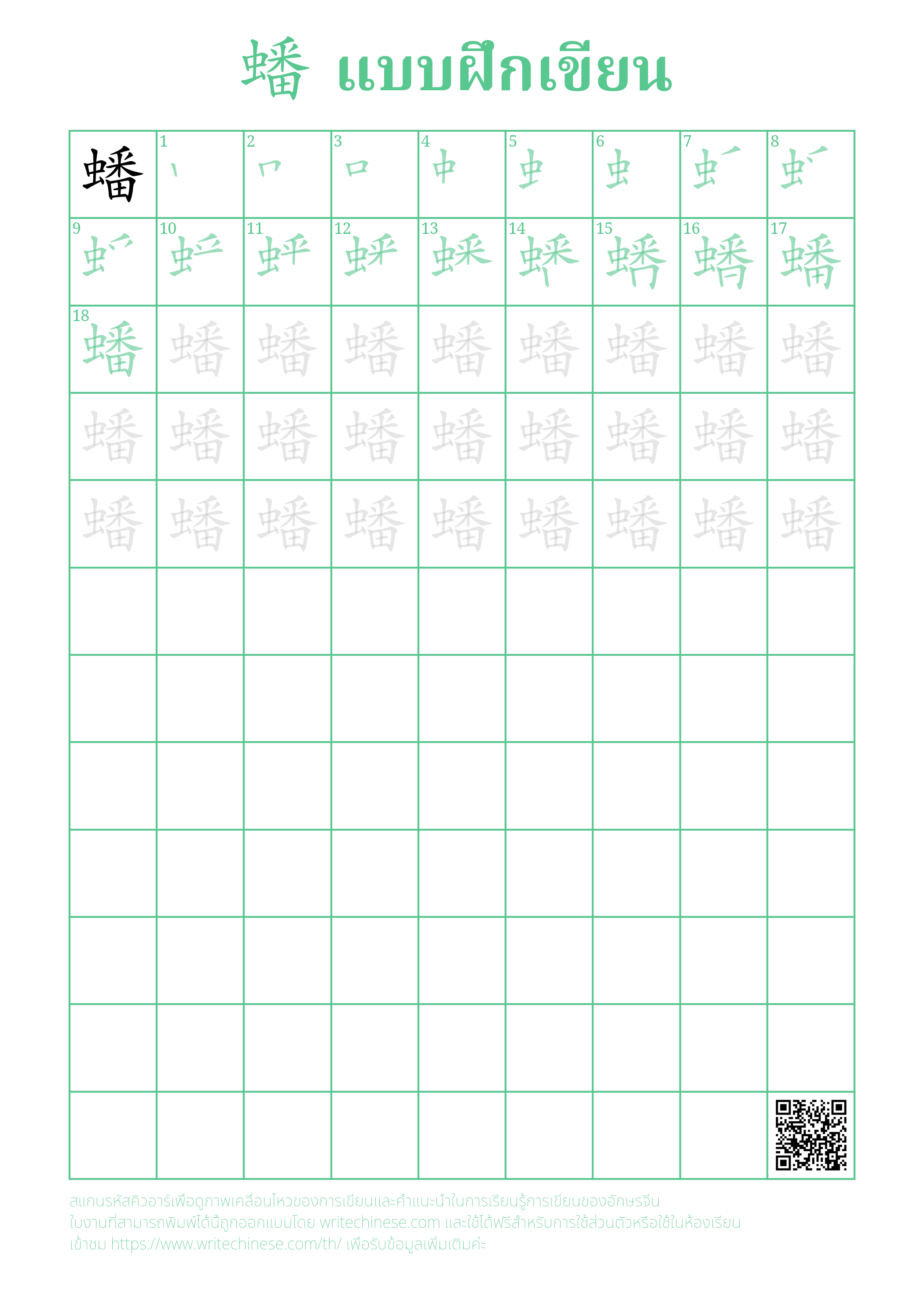 เรียนรู้การเขียนอักษรจีน "蟠" ขีดละขีดด้วยคำแนะนำขั้นตอนที่ชัดเจน