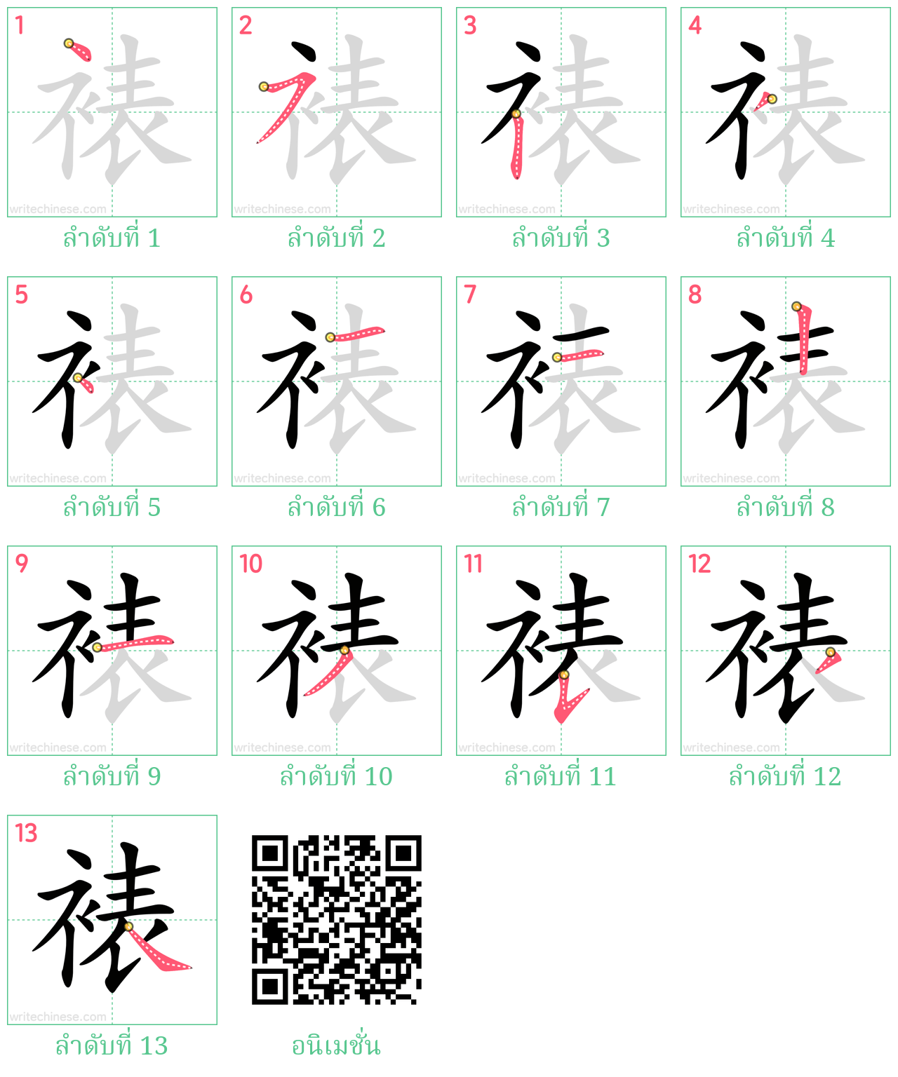เรียนรู้การเขียนอักษรจีน "裱" โดยการดูภาพเคลื่อนไหวของลำดับการเสียบเส้นของ "裱"