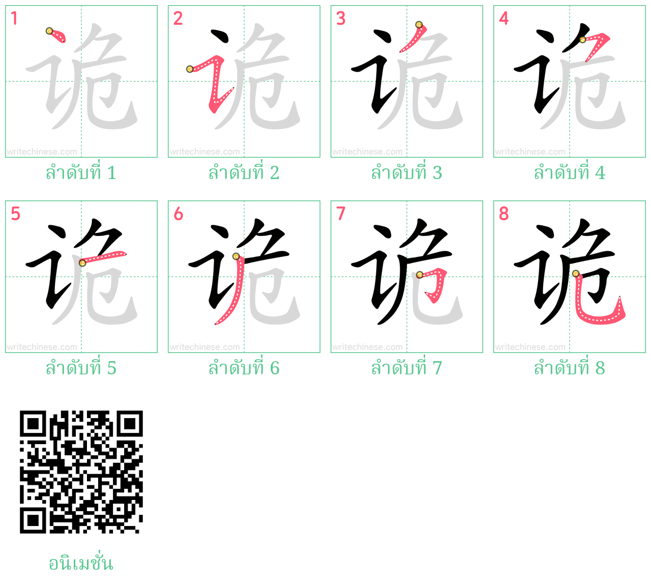 เรียนรู้การเขียนอักษรจีน "诡" ขีดละขีดด้วยคำแนะนำขั้นตอนที่ชัดเจน