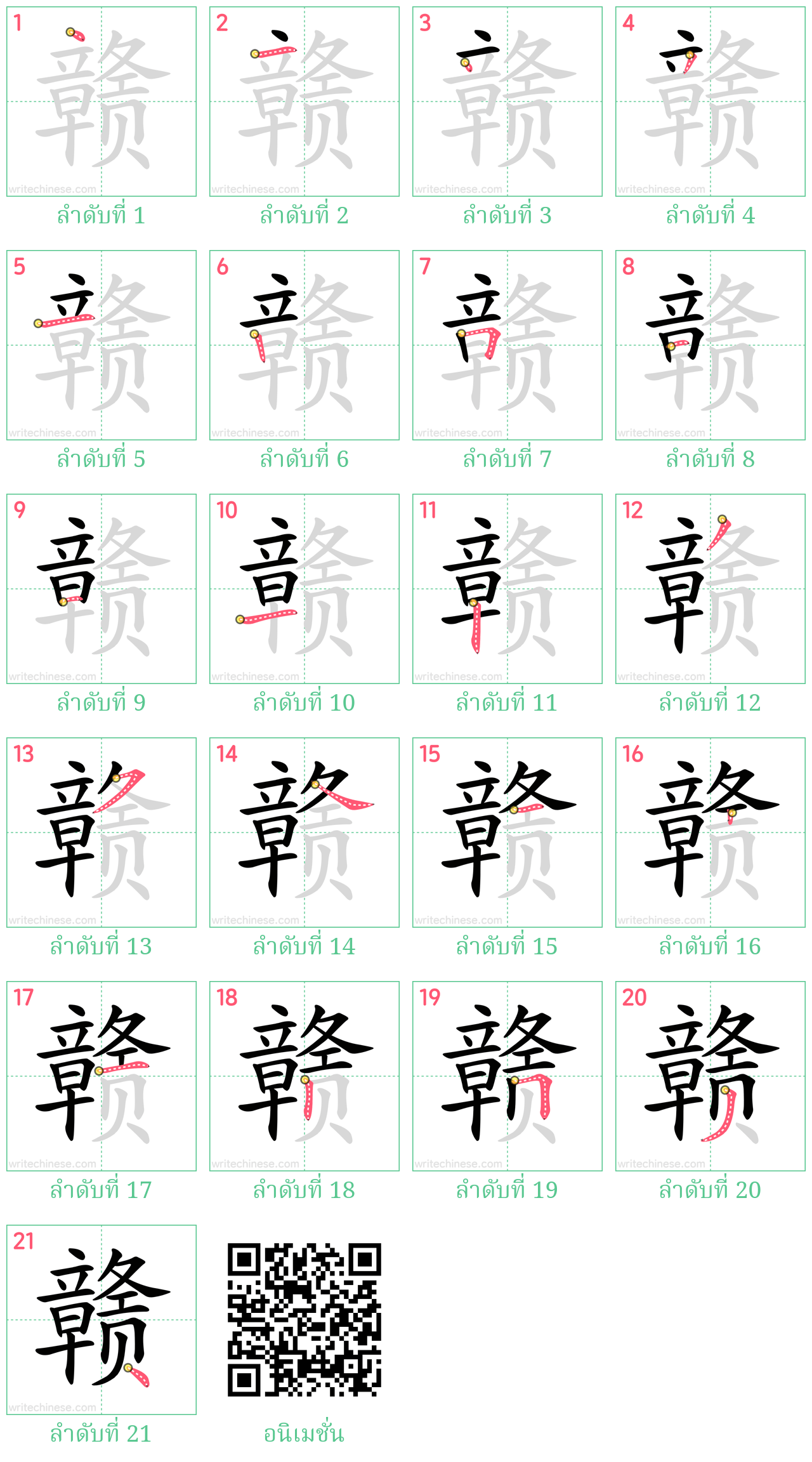 เรียนรู้การเขียนอักษรจีน "赣" โดยการดูภาพเคลื่อนไหวของลำดับการเสียบเส้นของ "赣"