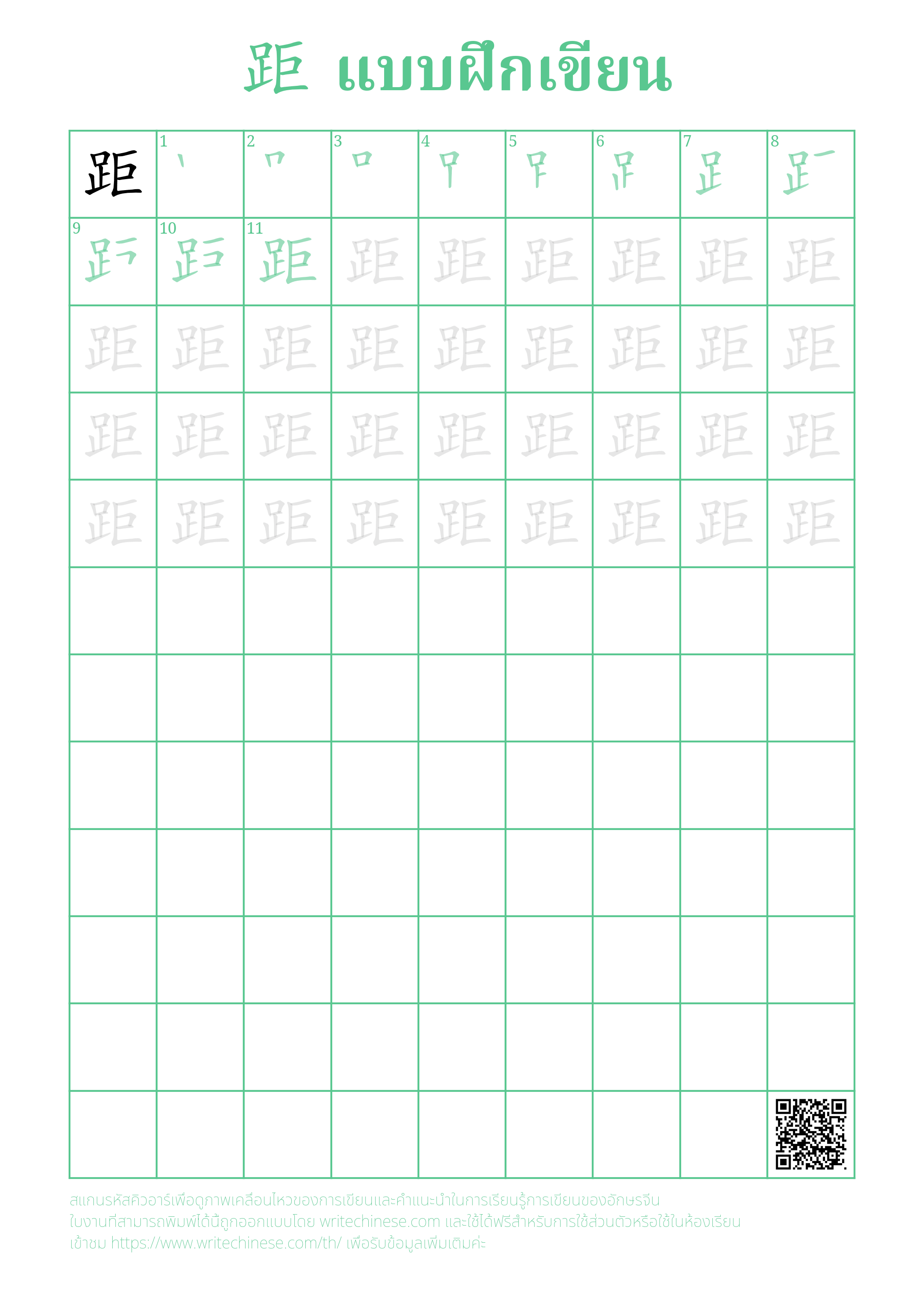 เรียนรู้การเขียนอักษรจีน "距" ขีดละขีดด้วยคำแนะนำขั้นตอนที่ชัดเจน
