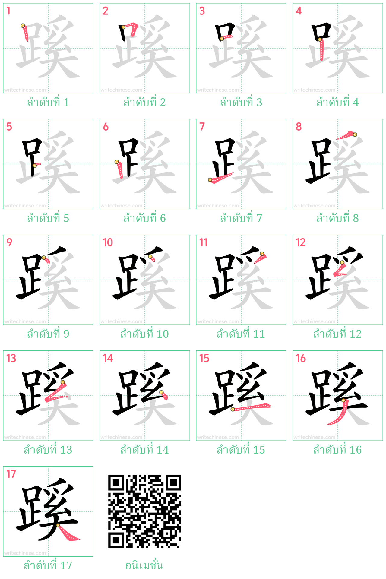 เรียนรู้การเขียนอักษรจีน "蹊" ขีดละขีดด้วยคำแนะนำขั้นตอนที่ชัดเจน