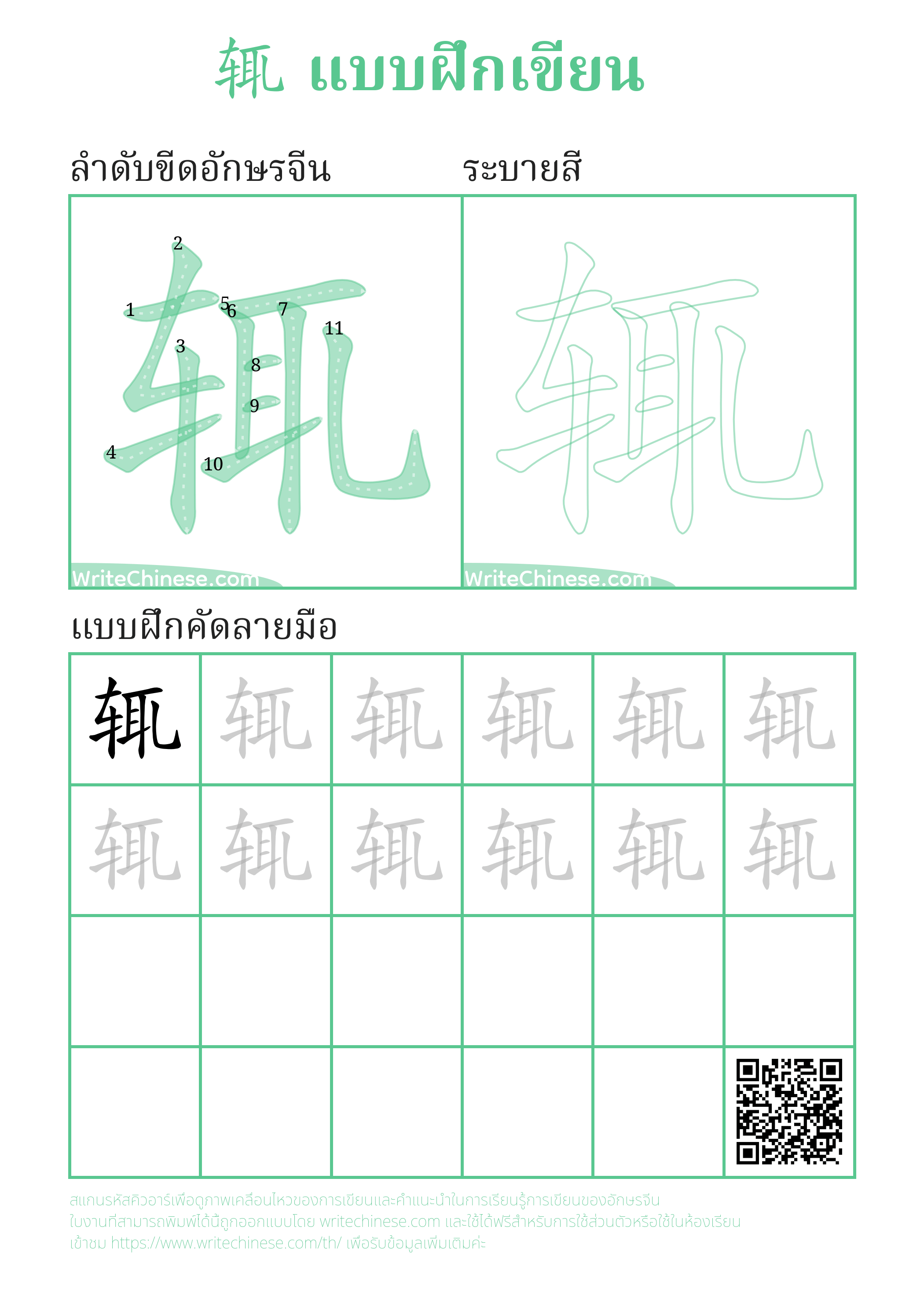เรียนรู้การเขียนอักษรจีน "辄" ขีดละขีดด้วยคำแนะนำขั้นตอนที่ชัดเจน