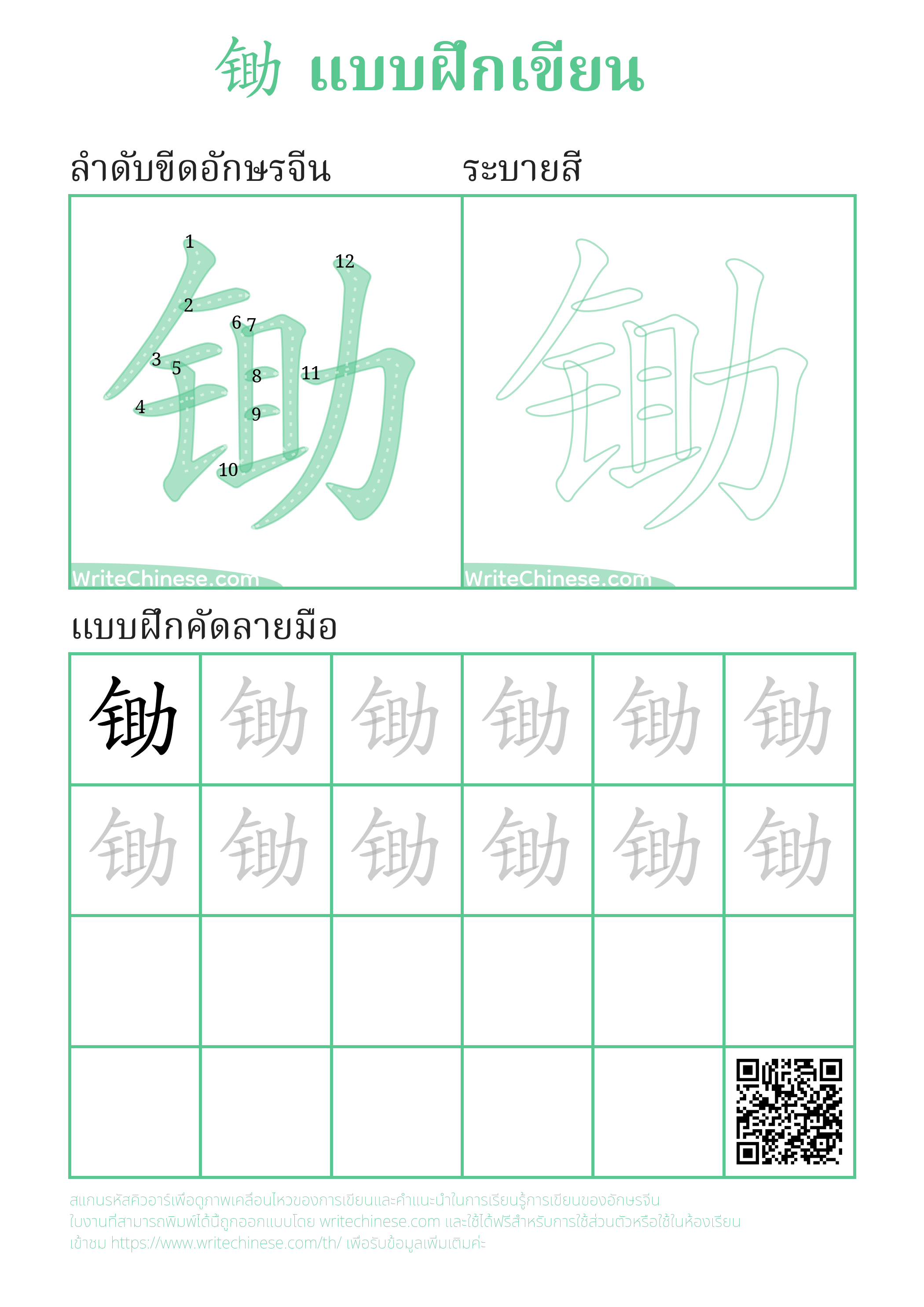 เรียนรู้การเขียนอักษรจีน "锄" ขีดละขีดด้วยคำแนะนำขั้นตอนที่ชัดเจน