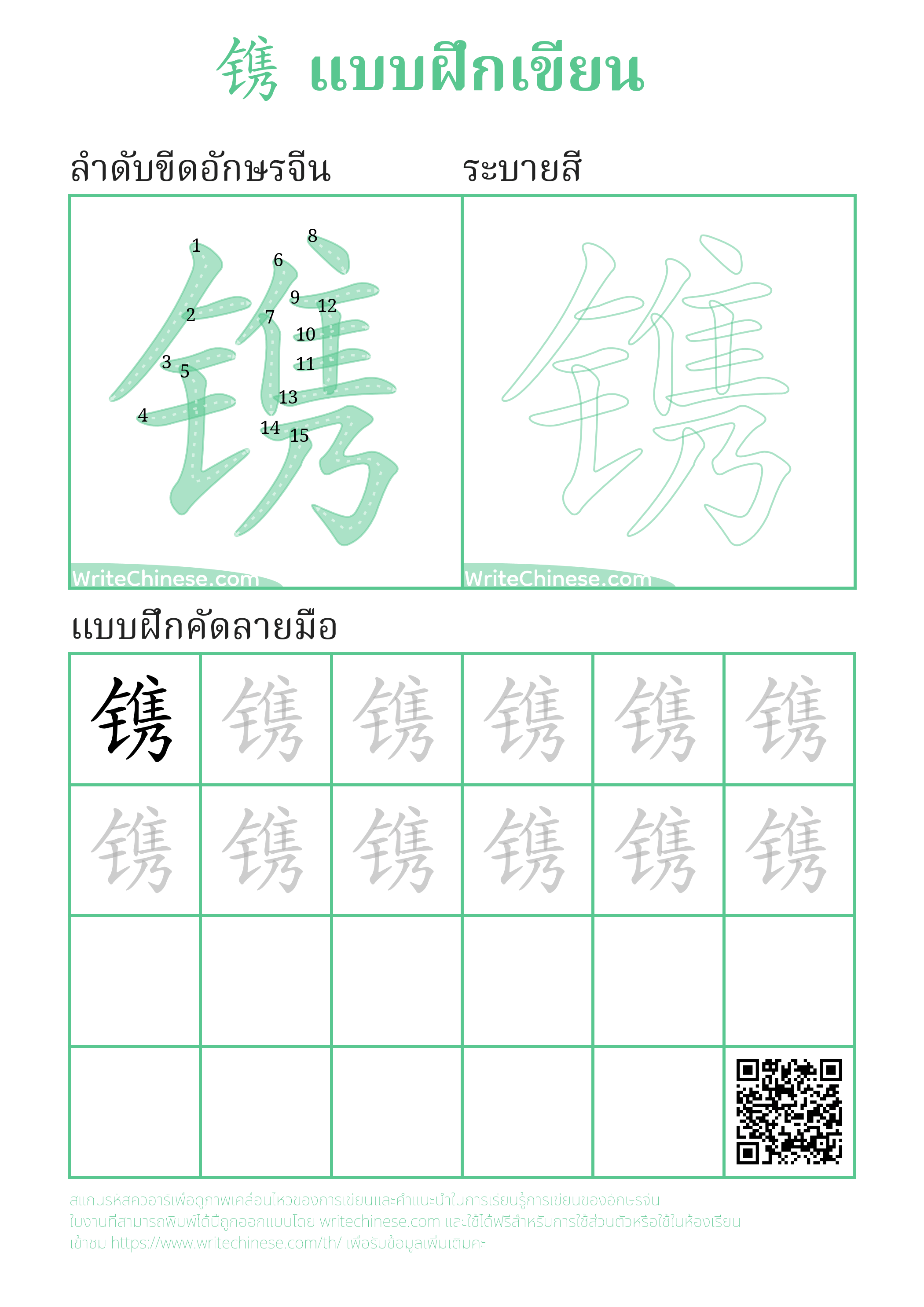 เรียนรู้การเขียนอักษรจีน "镌" ขีดละขีดด้วยคำแนะนำขั้นตอนที่ชัดเจน
