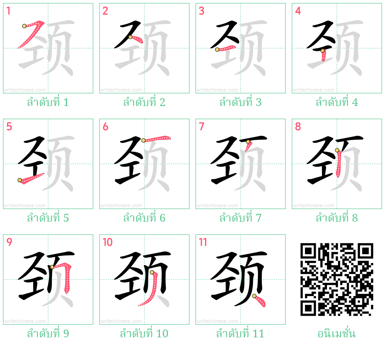 เรียนรู้การเขียนอักษรจีน "颈" โดยการดูภาพเคลื่อนไหวของลำดับการเสียบเส้นของ "颈"